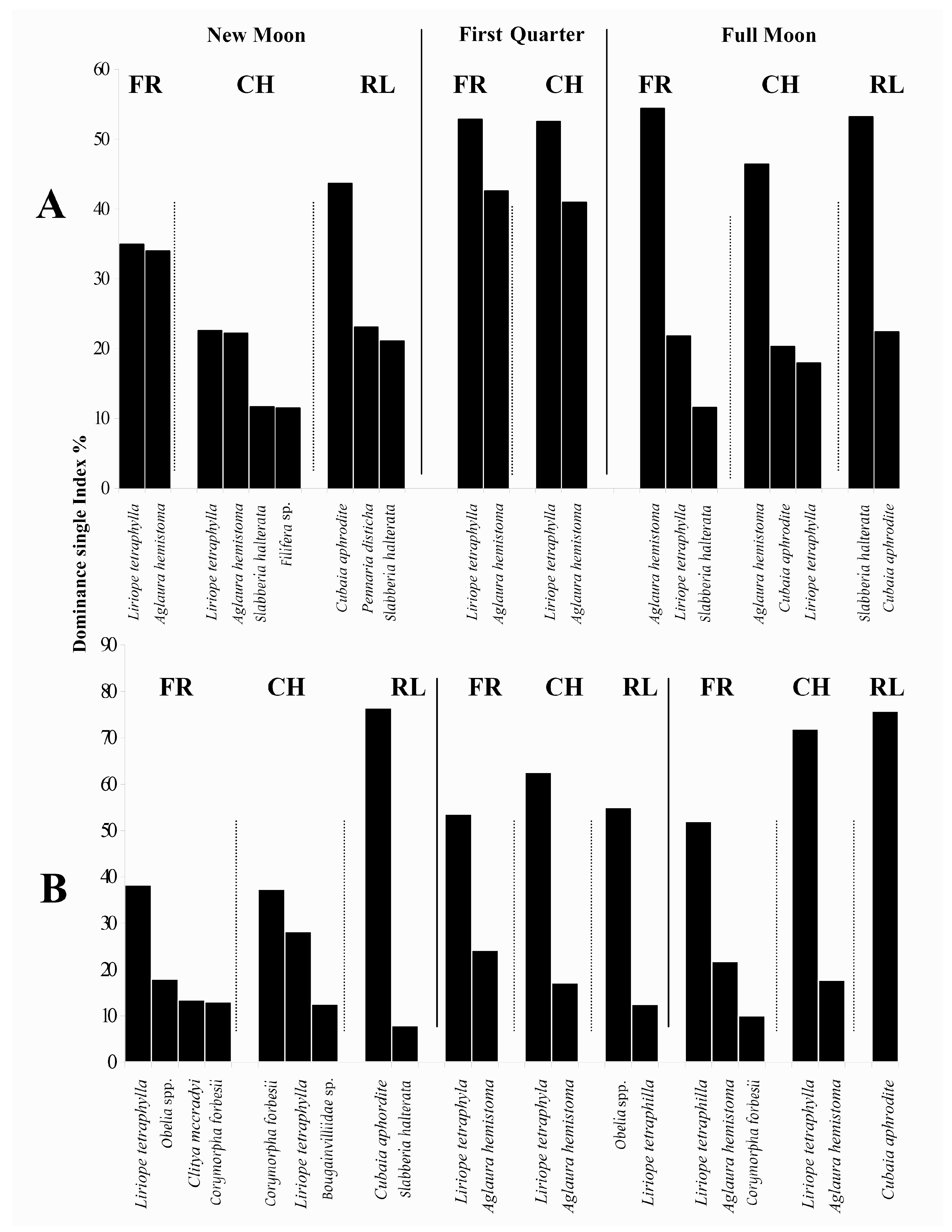 Chicago/Turabian StyleTovar-Juárez, Edgar, Manuel Elías-Gutiérrez, Lourdes Segura-Puertas, and María A. Mendoza-Becerril. 2025. "Influence of Lunar Periodicity on Medusae (Cnidaria) Composition in a Western Caribbean Reef: Community Structure Before Sargassum Blooms" Diversity 17, no. 11: 769. https://doi.org/10.3390/d17110769
