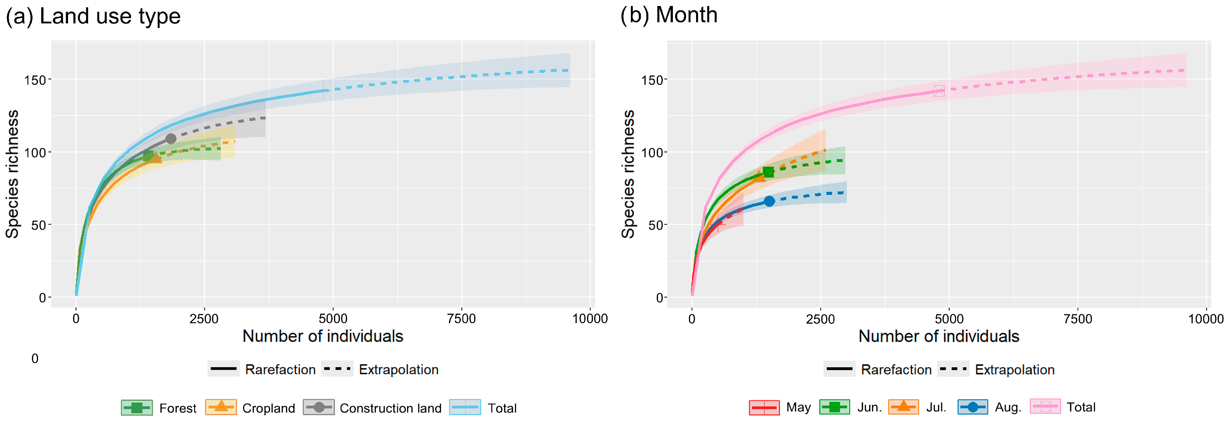 4.2. Diversity Variation with Months and Land Use