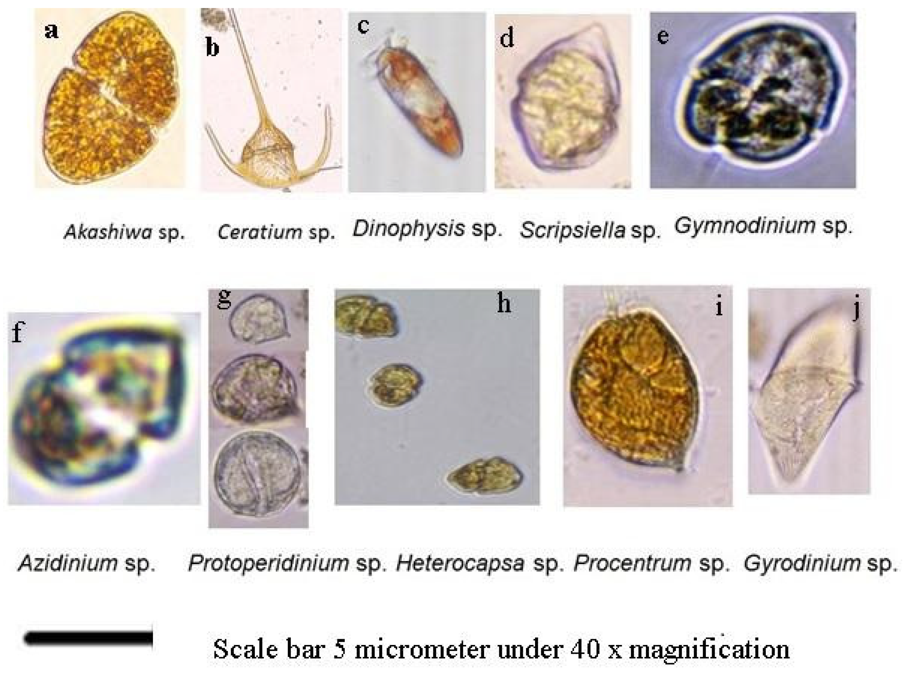 - Zakariaand, M.; Abdulrahman, A. Occurrence and germination of dinoflagellate cysts in surface sediments from the Red Sea off the coasts of Saudi Arabia. Oceanologia 2011, 53, 121–136. [Google Scholar] [CrossRef]