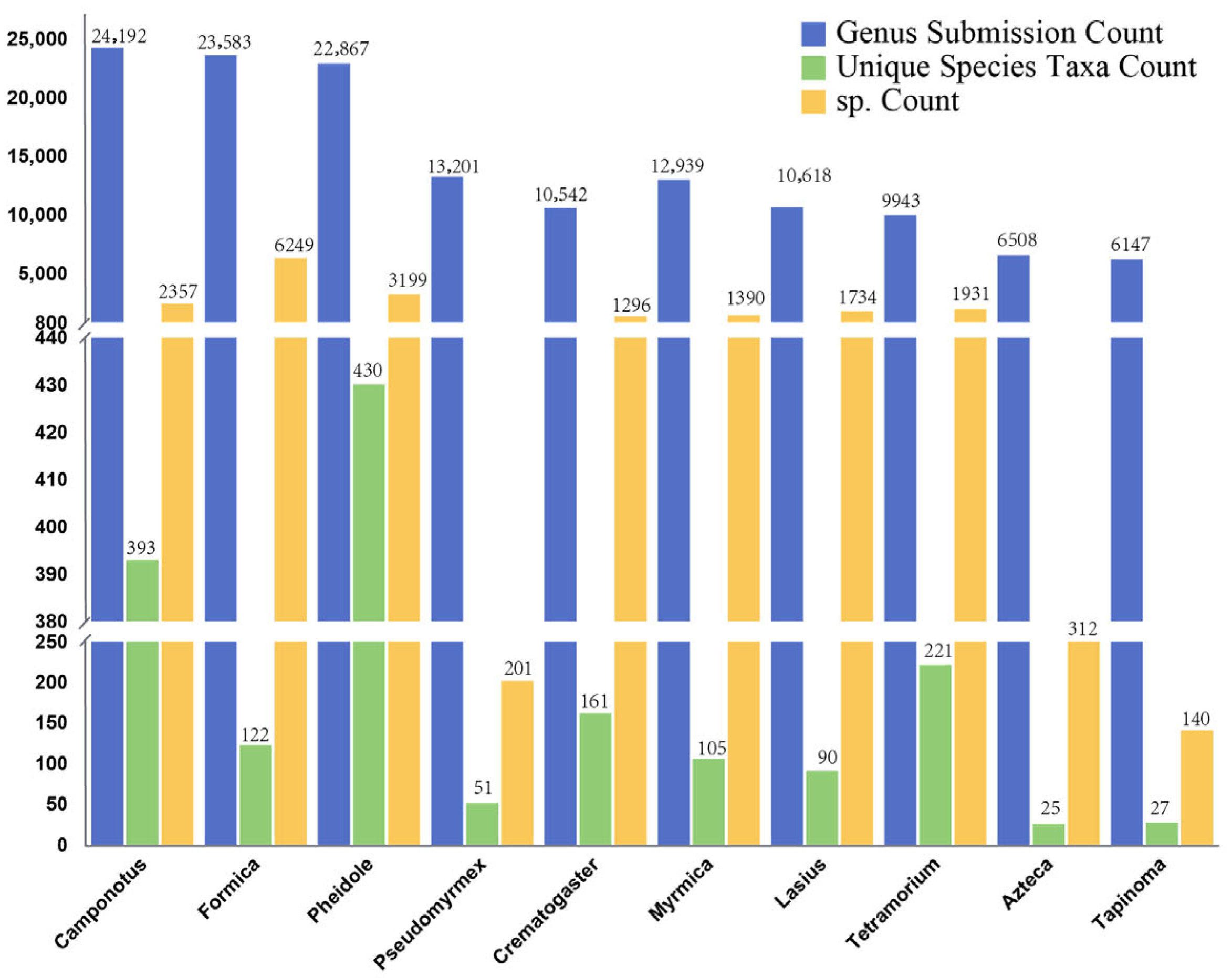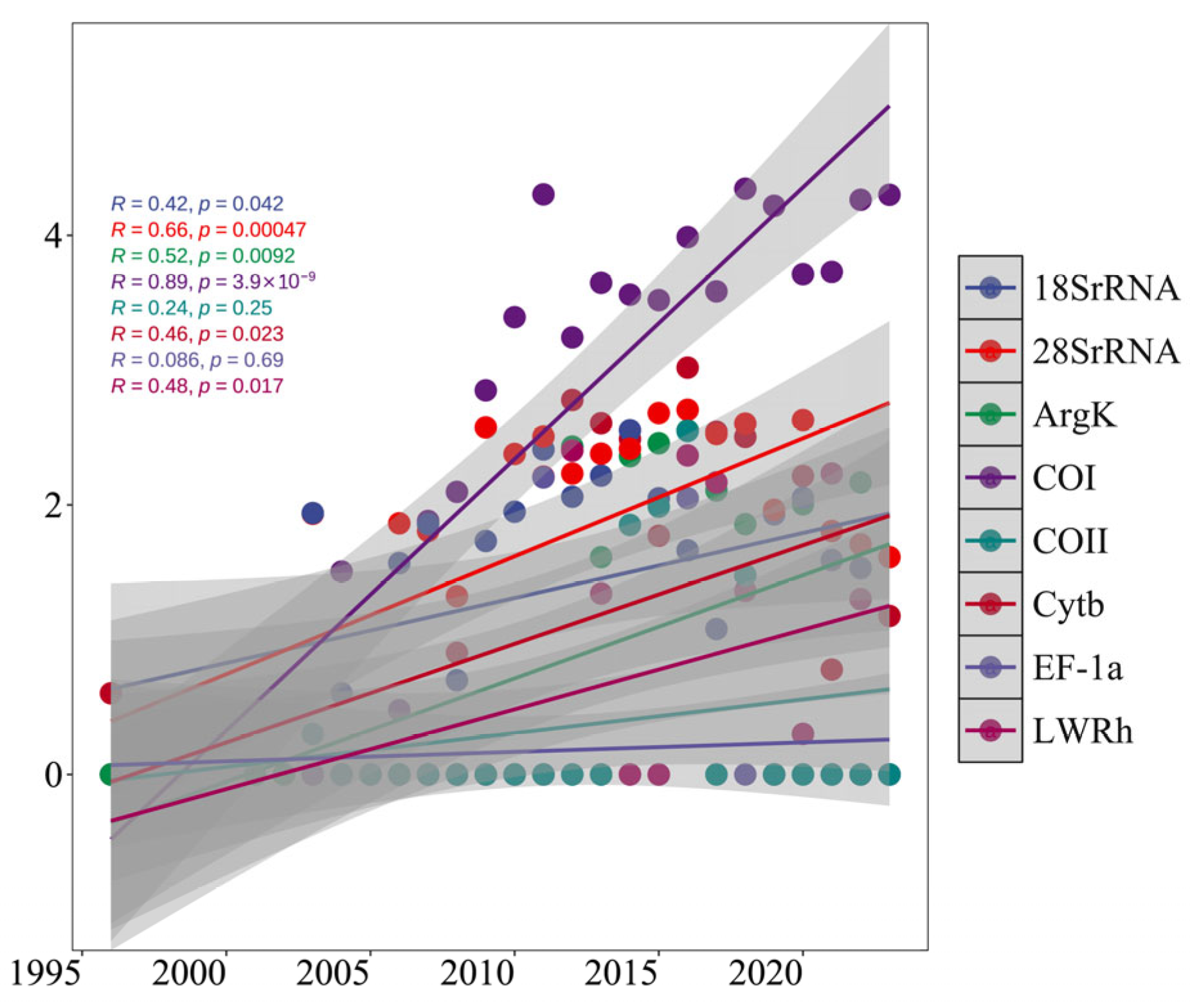 | Gene | Sequence No. | Genus No. | Species No. | sp. No. |