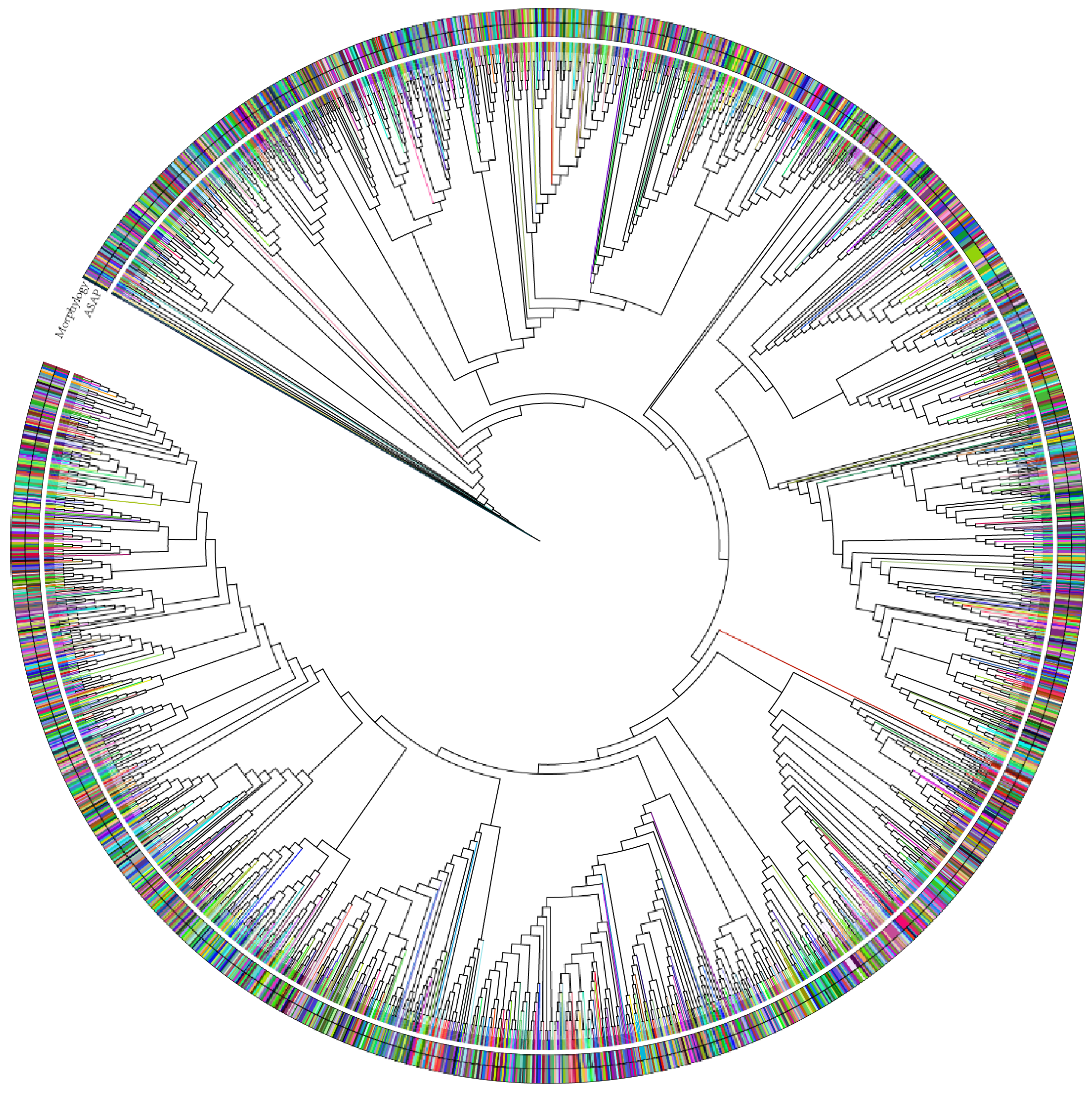 - Puillandre, N.; Brouillet, S.; Achaz, G. ASAP: Assemble Species by Automatic Partitioning. Mol. Ecol. Resour. 2021, 21, 609–620. [Google Scholar] [CrossRef]