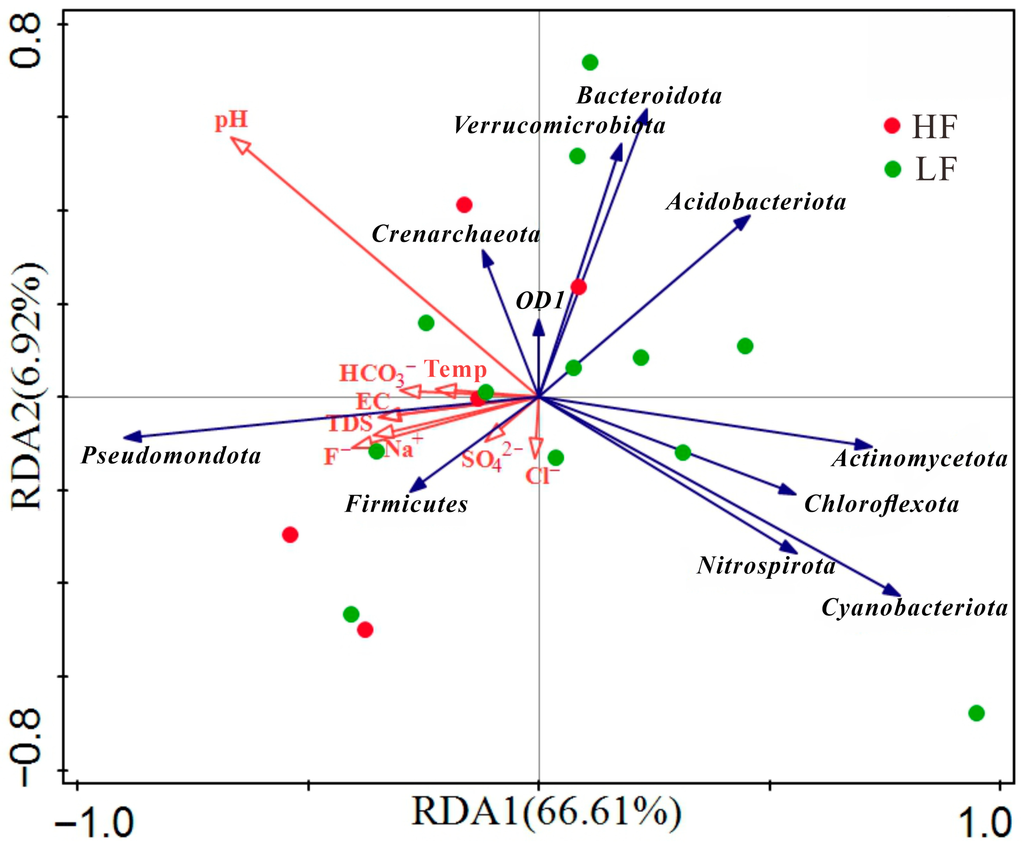 Chicago/Turabian StyleGong, Haolin, Qi Wang, Li Yang, and Jiajia Liao. 2025. "The Correlation Between High-Fluoride Hot Springs and Microbial Community Structure and Diversity" Diversity 17, no. 11: 784. https://doi.org/10.3390/d17110784