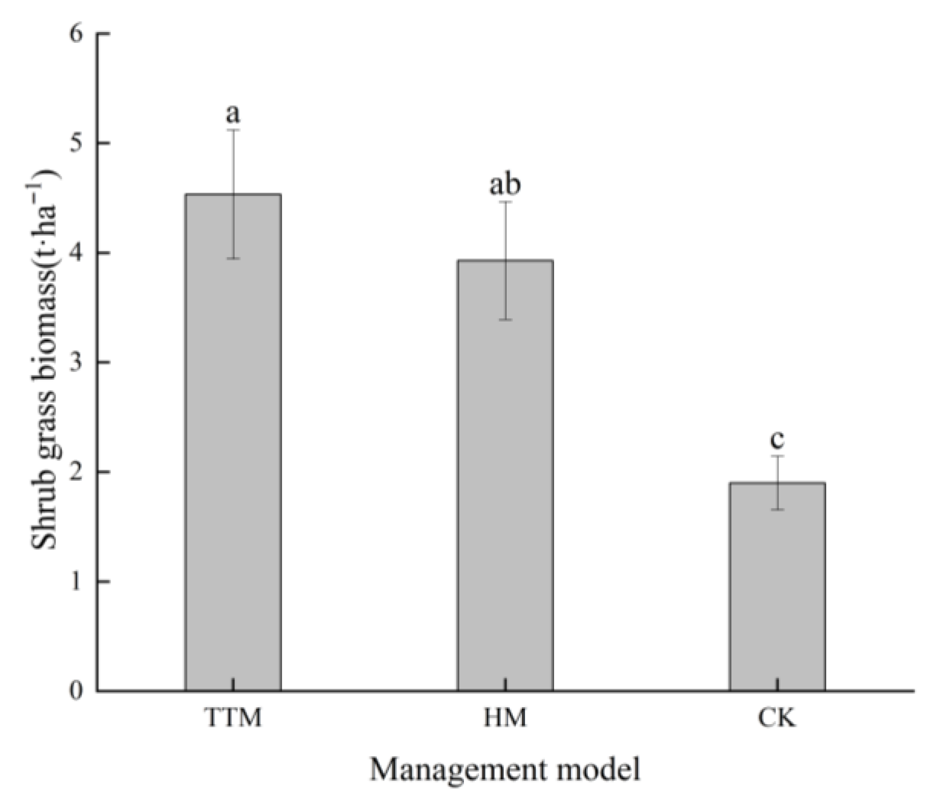 3.2. Changes in Understory Biomass Under Different Management Systems
