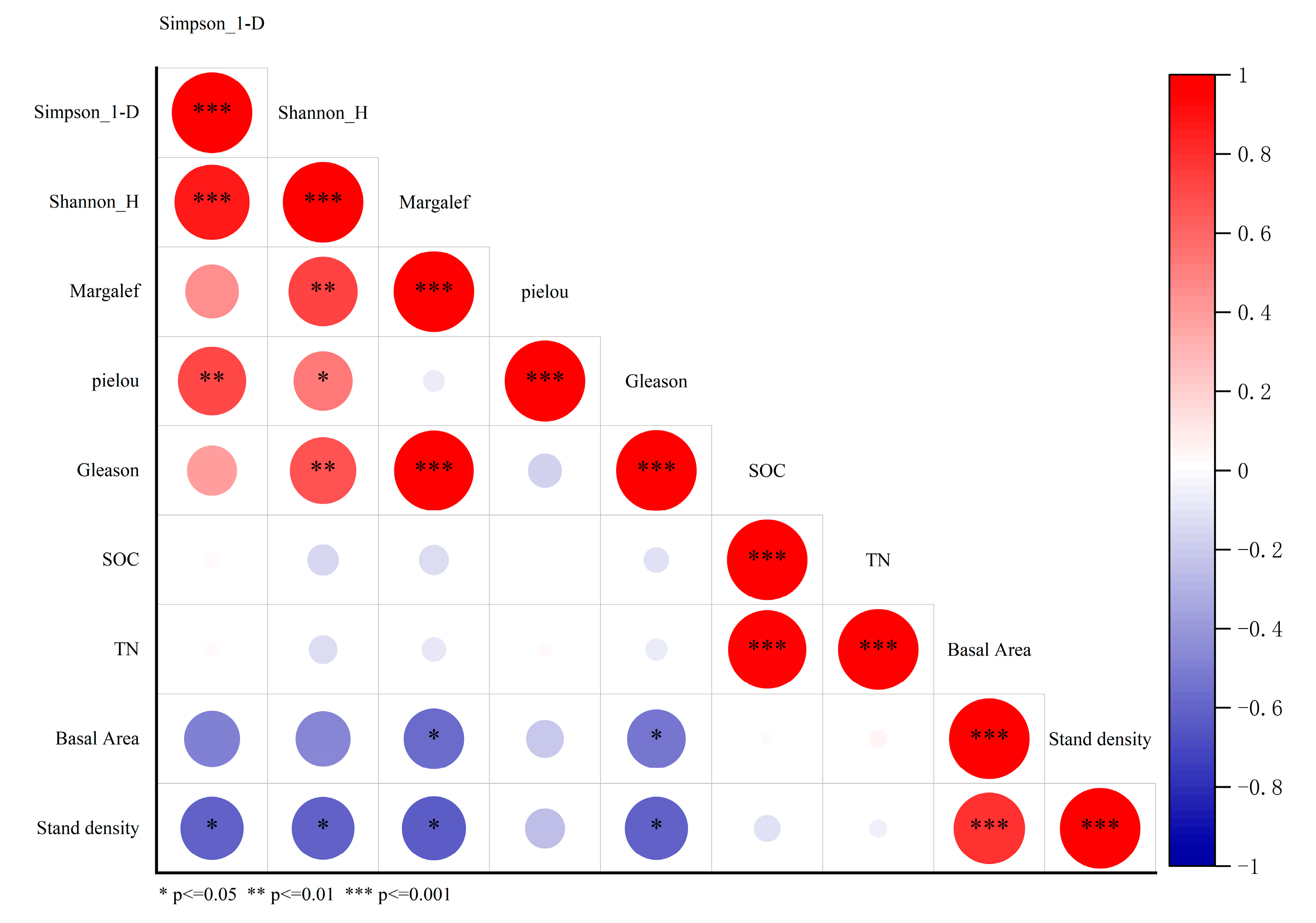 3.4. Correlation Analysis Between Biodiversity and Ecological Factors
