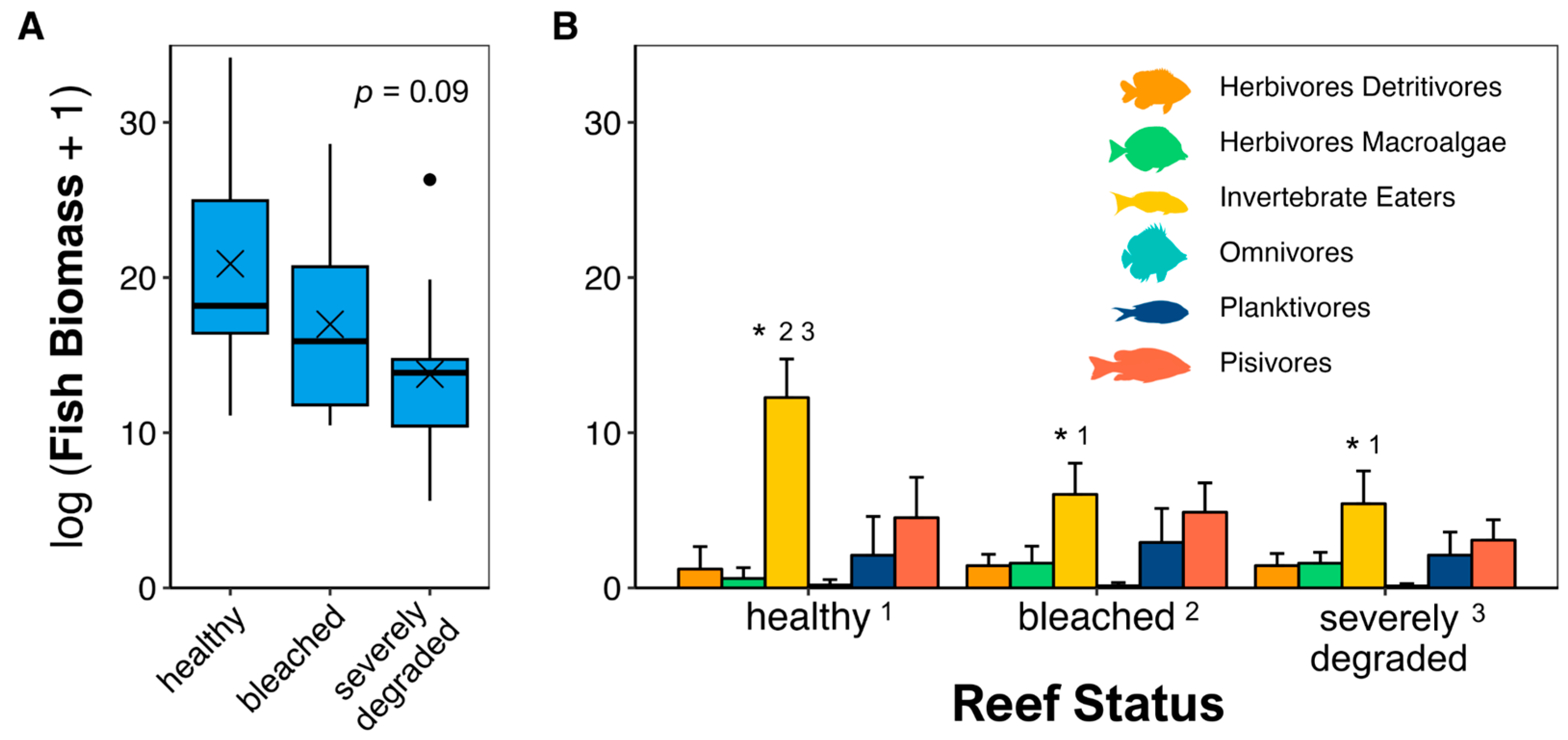 - Pratchett, M.S.; Hoey, A.S.; Wilson, S.K.; Messmer, V.; Graham, N.A.J. Changes in biodiversity and functioning of the reef fish assemblages following coral bleaching and coral loss. Diversity 2011, 3, 424–452. [Google Scholar] [CrossRef]