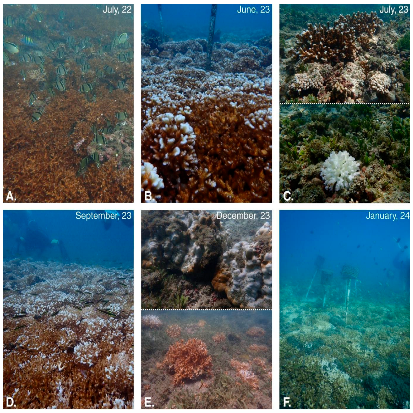 - Reimer, J.D.; Peixoto, R.S.; Davies, S.W.; Traylor-Knowles, N.; Short, M.L.; Cabral-Tena, R.A.; Burt, J.A.; Pessoa, I.; Banaszak, A.T.; Winters, R.S.; et al. The fourth global coral bleaching event: Where do we go from here? Coral Reefs 2024, 43, 1121–1125. [Google Scholar] [CrossRef]