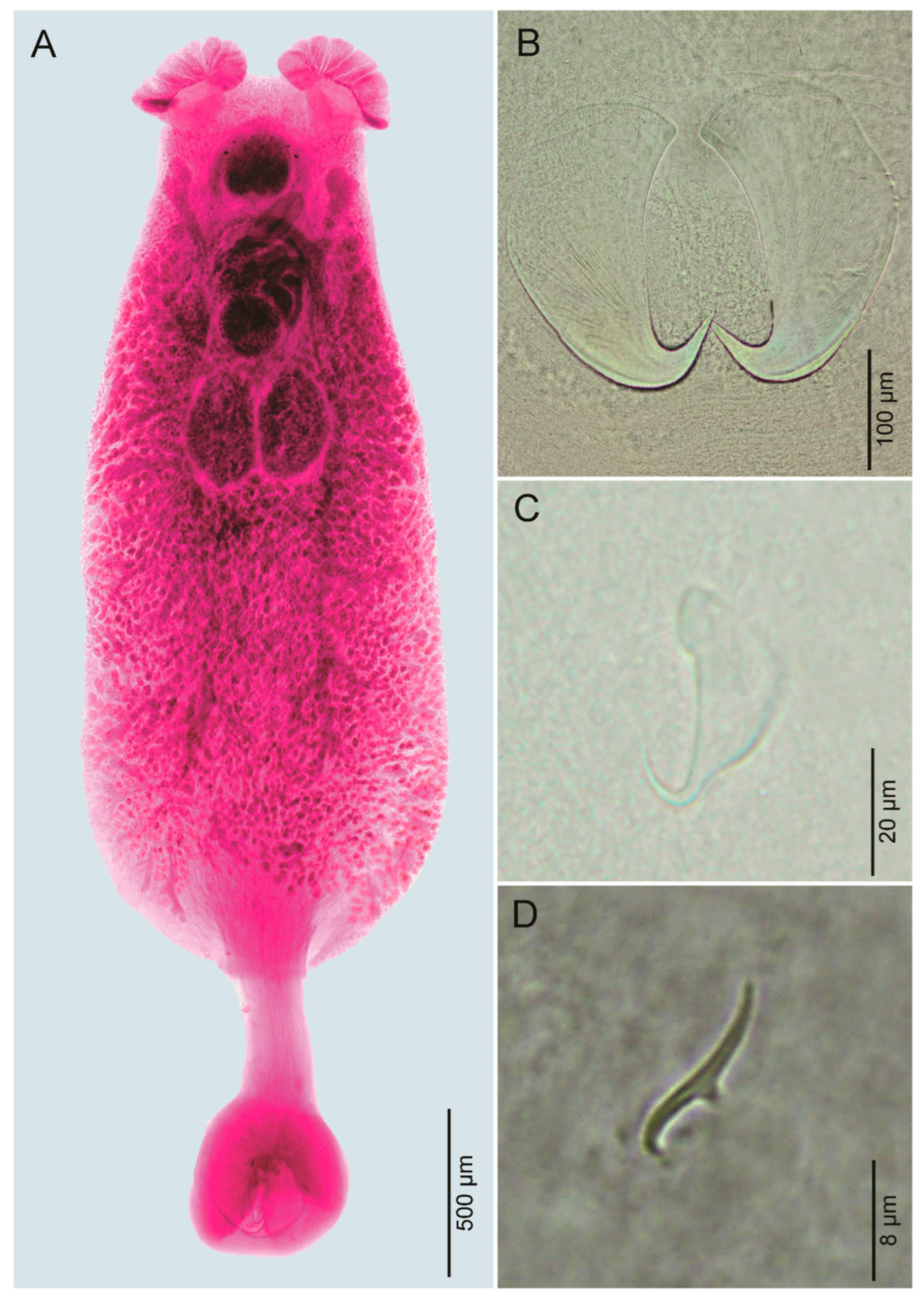 - Robinson, E.S. Some Monogenetic Trematodes from Marine Fishes of the Pacific. Trans. Am. Microsc. Soc. 1961, 80, 235–266. [Google Scholar] [CrossRef]