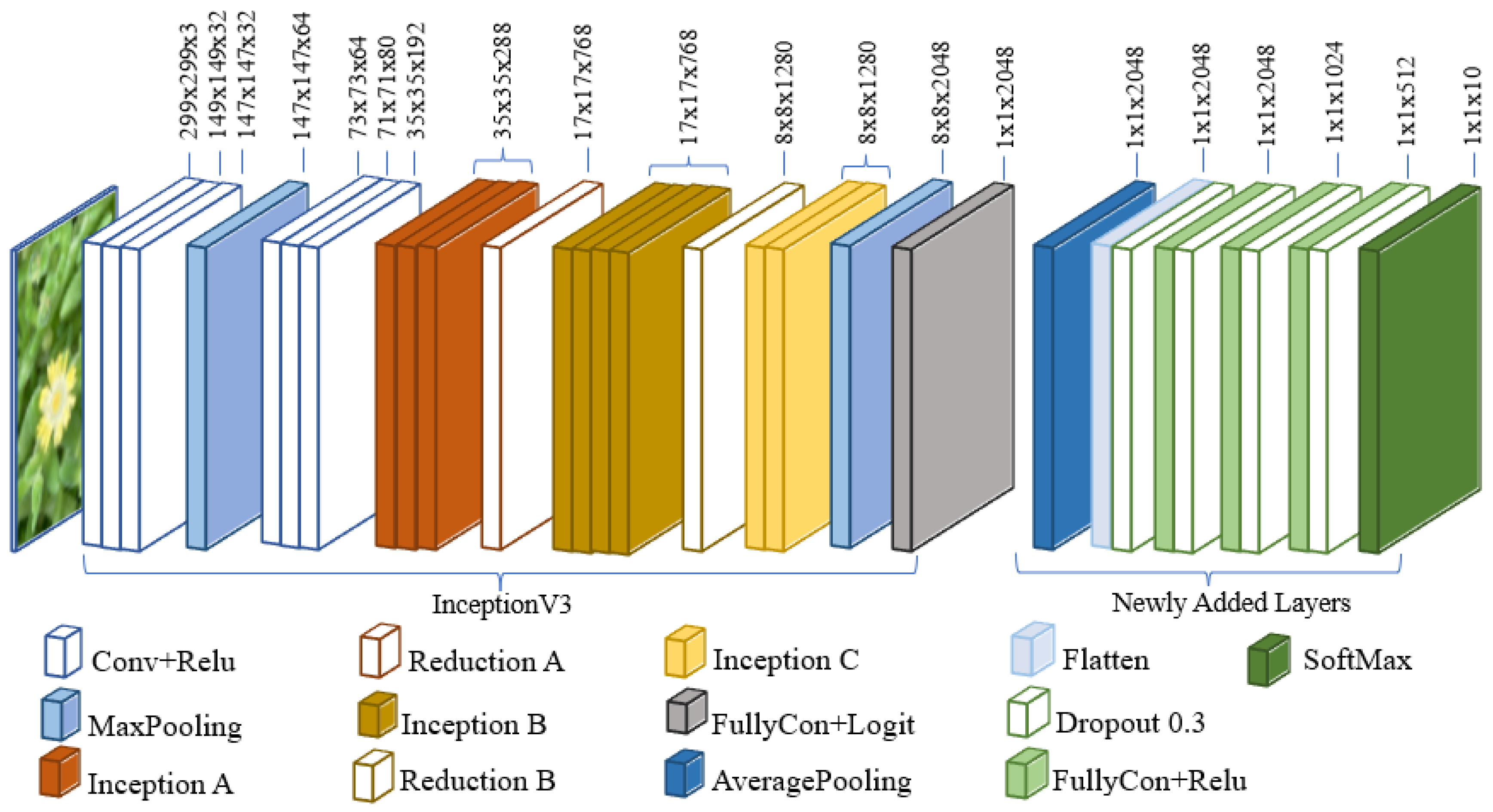 Deep learning, which is built on the principles of artificial neural networks, has been increasingly applied in agricultural research. The rapid growth of digital agricultural data has provided a suitable foundation for the development and evaluation of advanced learning architectures. Convolutional neural networks (CNNs), which process images through hierarchical feature extraction, have become the most widely adopted models in this domain. Their success can be traced to benchmark competitions such as the ImageNet Large-Scale Visual Recognition Challenge (ILSVRC), where architectures including Inception achieved state-of-the-art performance. InceptionV3, in particular, introduced inception blocks that combine multiple convolutional filter sizes within parallel branches, allowing the simultaneous extraction of local and global features at reduced computational cost.
