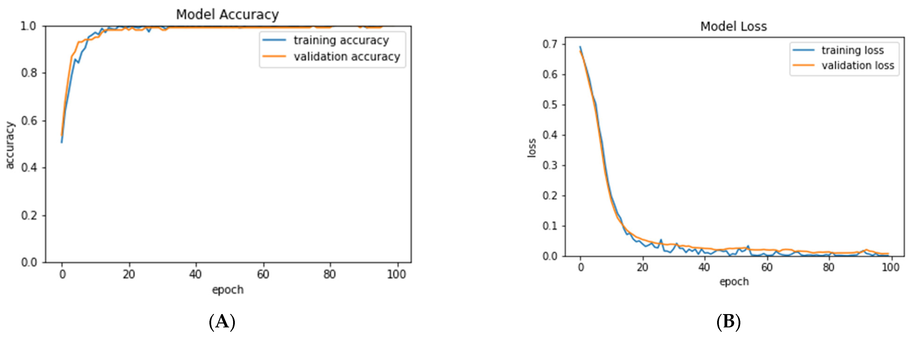 34] models were trained for 100 epochs using the same selected parameters. Using performance metrics, the models were evaluated, and the best model was selected. In the last stage, the best model was modified by adding ten layers. The obtained model was trained from scratch using ImageNet weights. To obtain better accuracy, hyperparameter tuning was performed. After obtaining targeted performance metrics, the early stop parameter was activated to find the optimum number of epochs needed for training, which aids in the efficient utilization of resources.