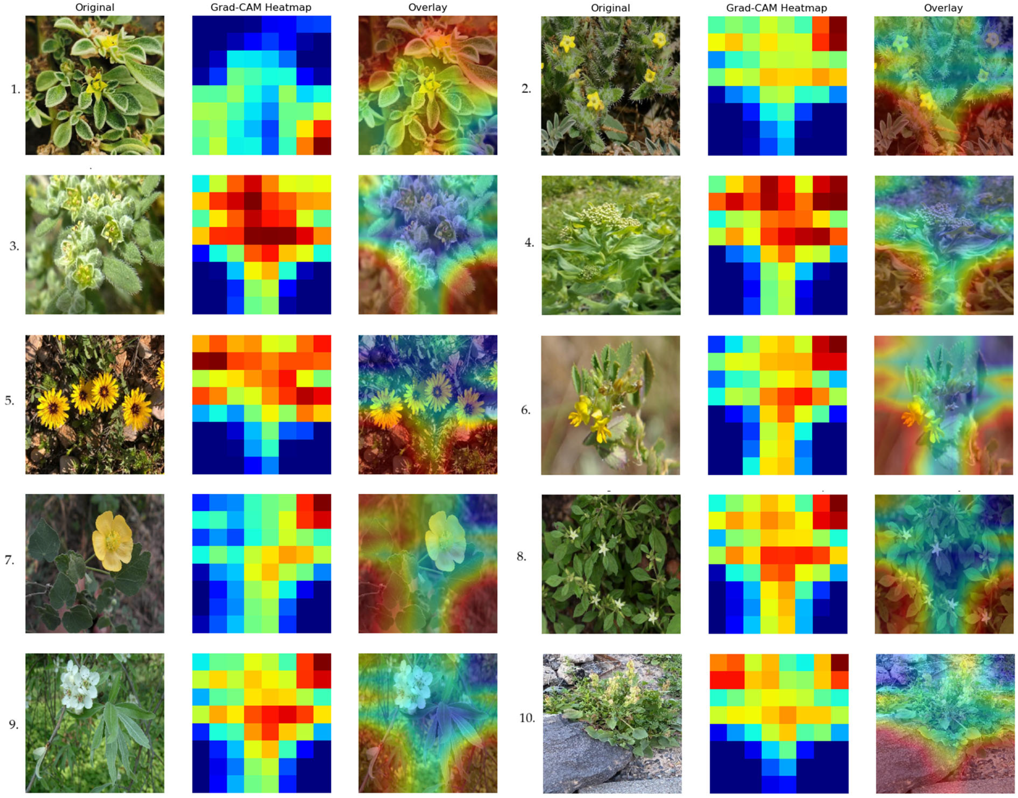 Desert ecosystems impose strong habitat filtering, which often leads to convergent adaptive traits such as reduced leaf size, thick cuticles, or succulence. While these similarities can make automated recognition more challenging, our dataset included finer taxonomic distinctions such as variation in reproductive structures, branching forms, and leaf morphology. These features provided sufficient variability for discrimination, while augmentation under diverse natural backgrounds and lighting conditions further reduced the risk of the model relying solely on shared desert-adaptive traits.