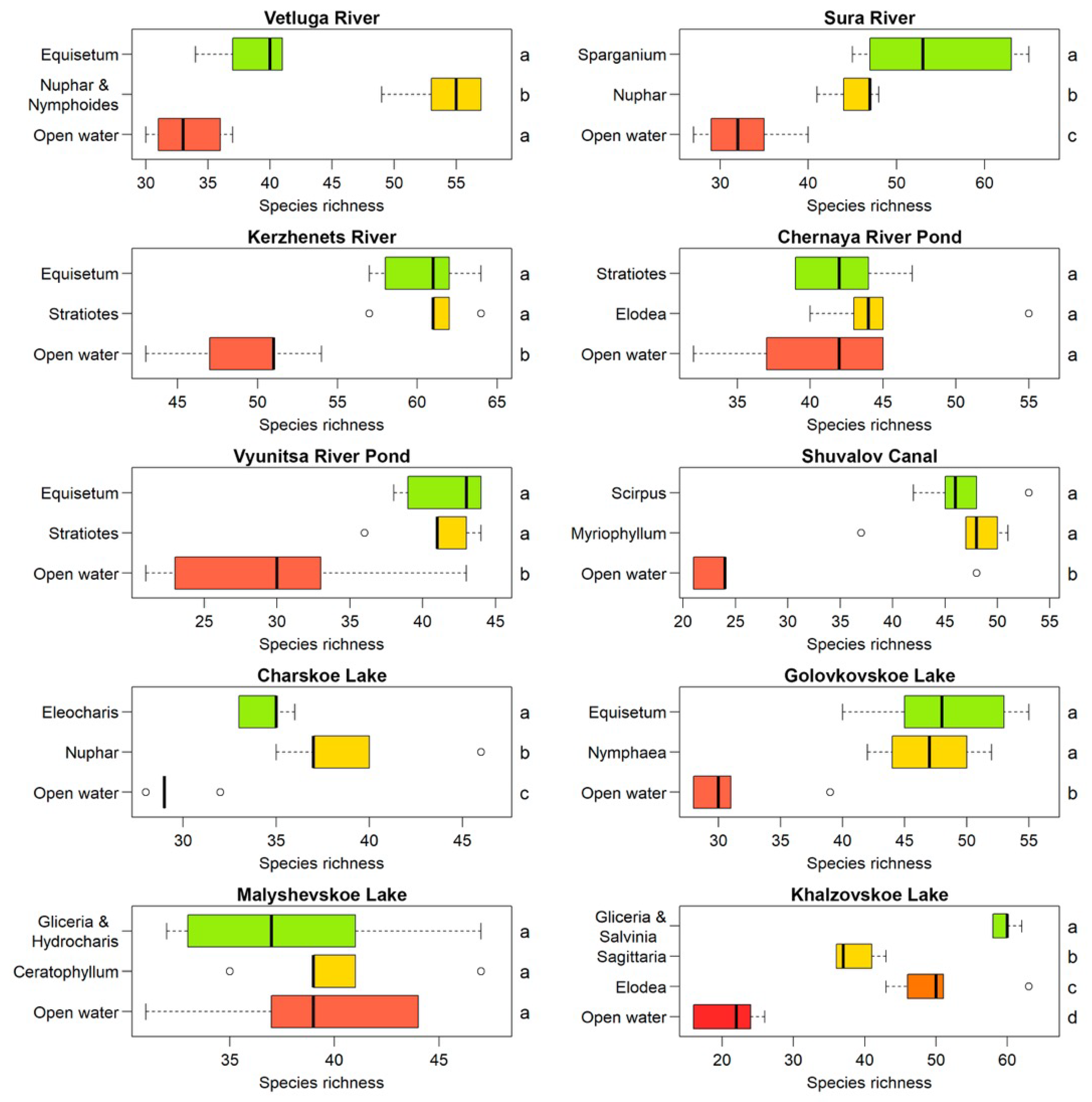 - Papchenkov, V.G. Vegetation Cover of Reservoirs and Watercourses of the Middle Volga Region; SMR MUBiNT: Yaroslavl, Russia, 2001. (In Russian) [Google Scholar]