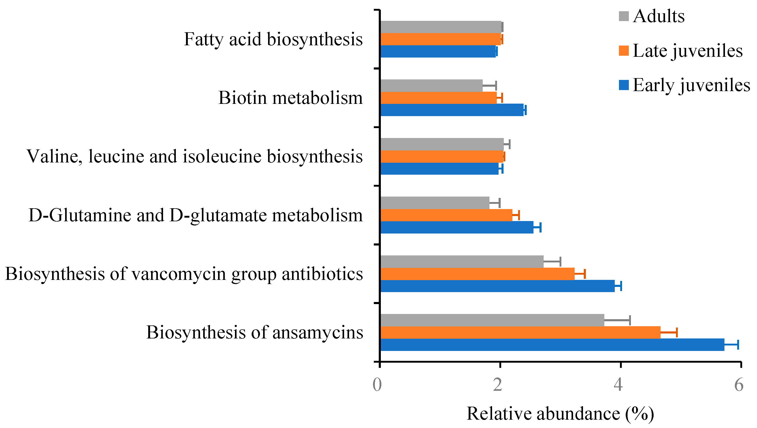 | Diversity Indices | Early Juveniles | Late Juveniles | Adults |