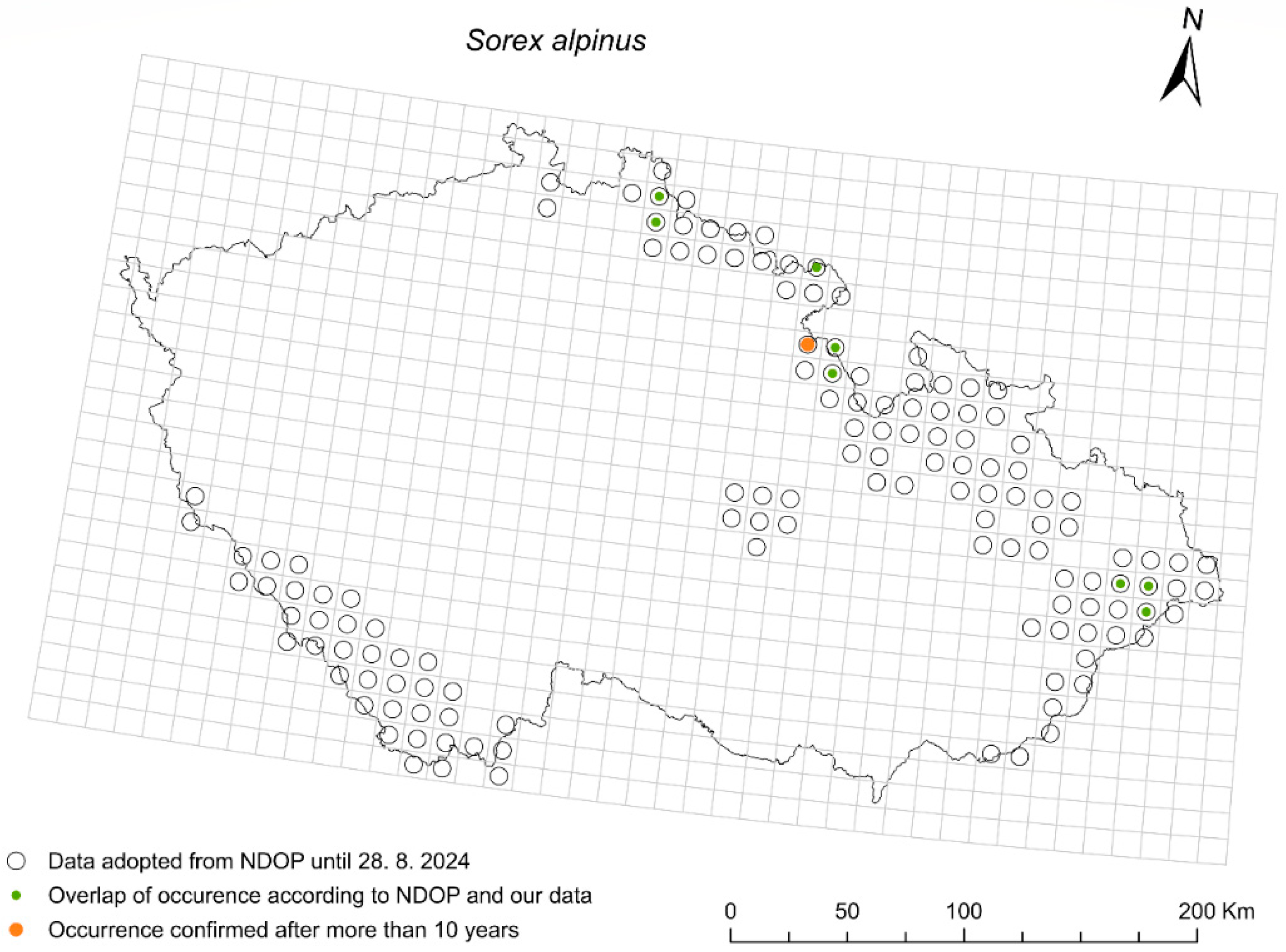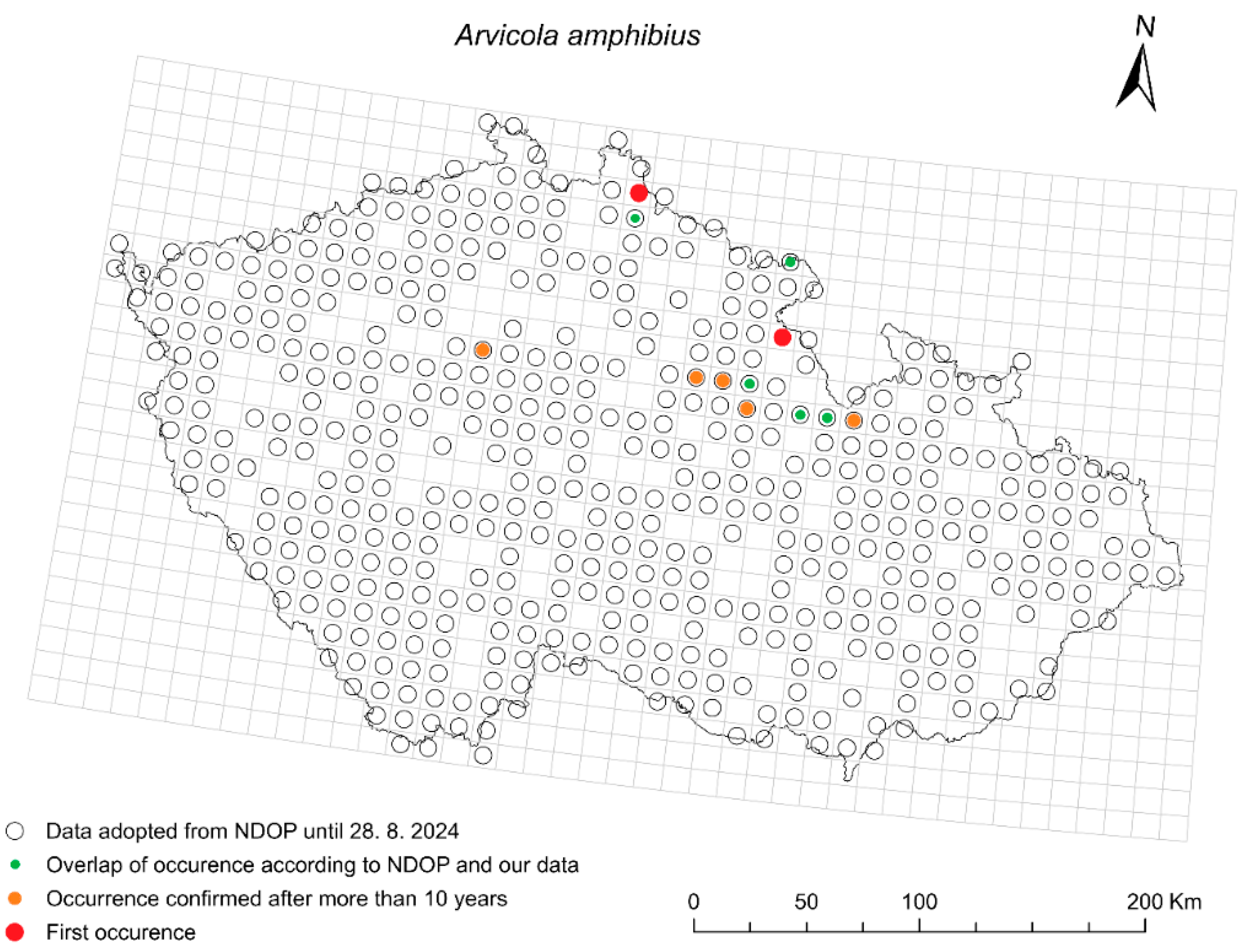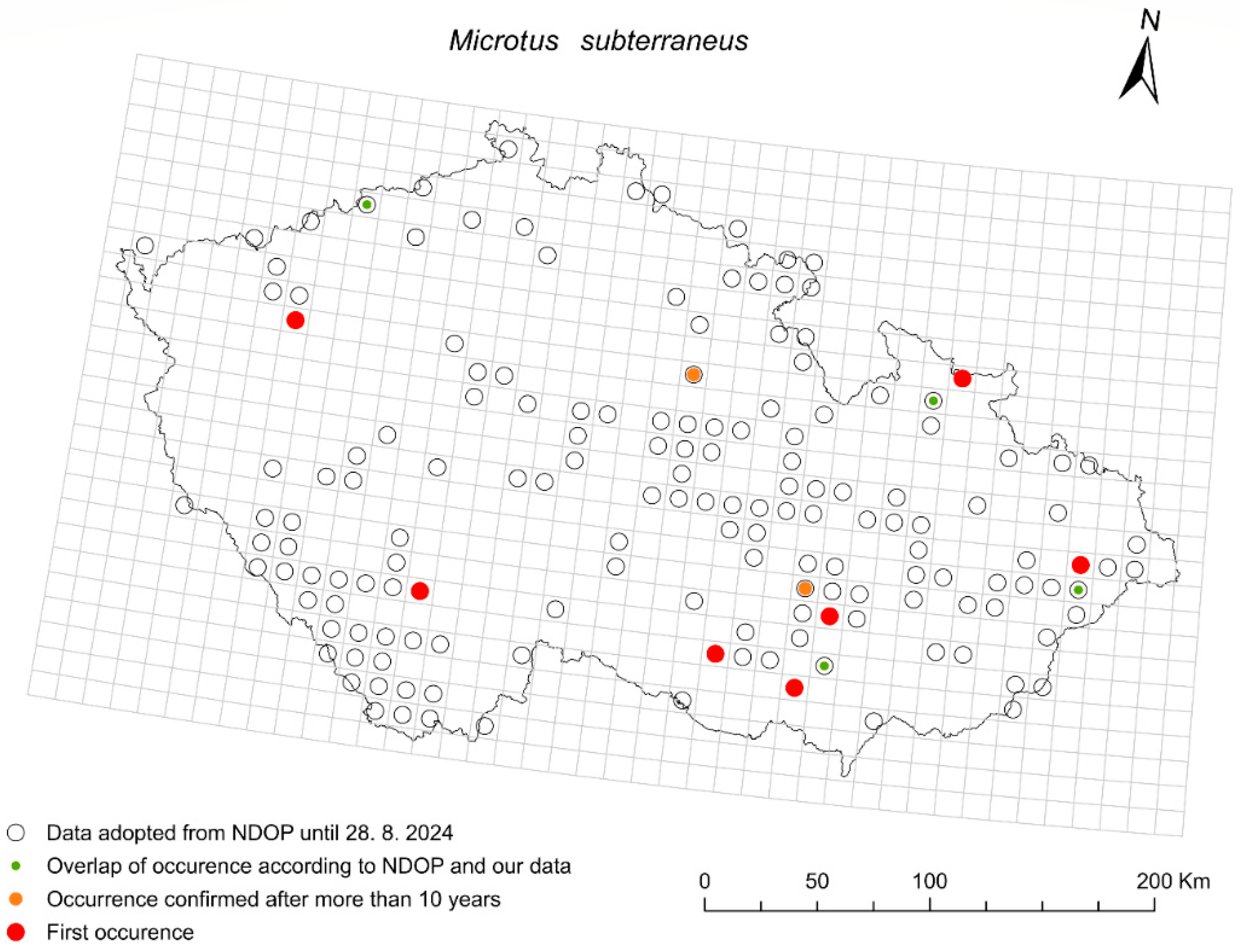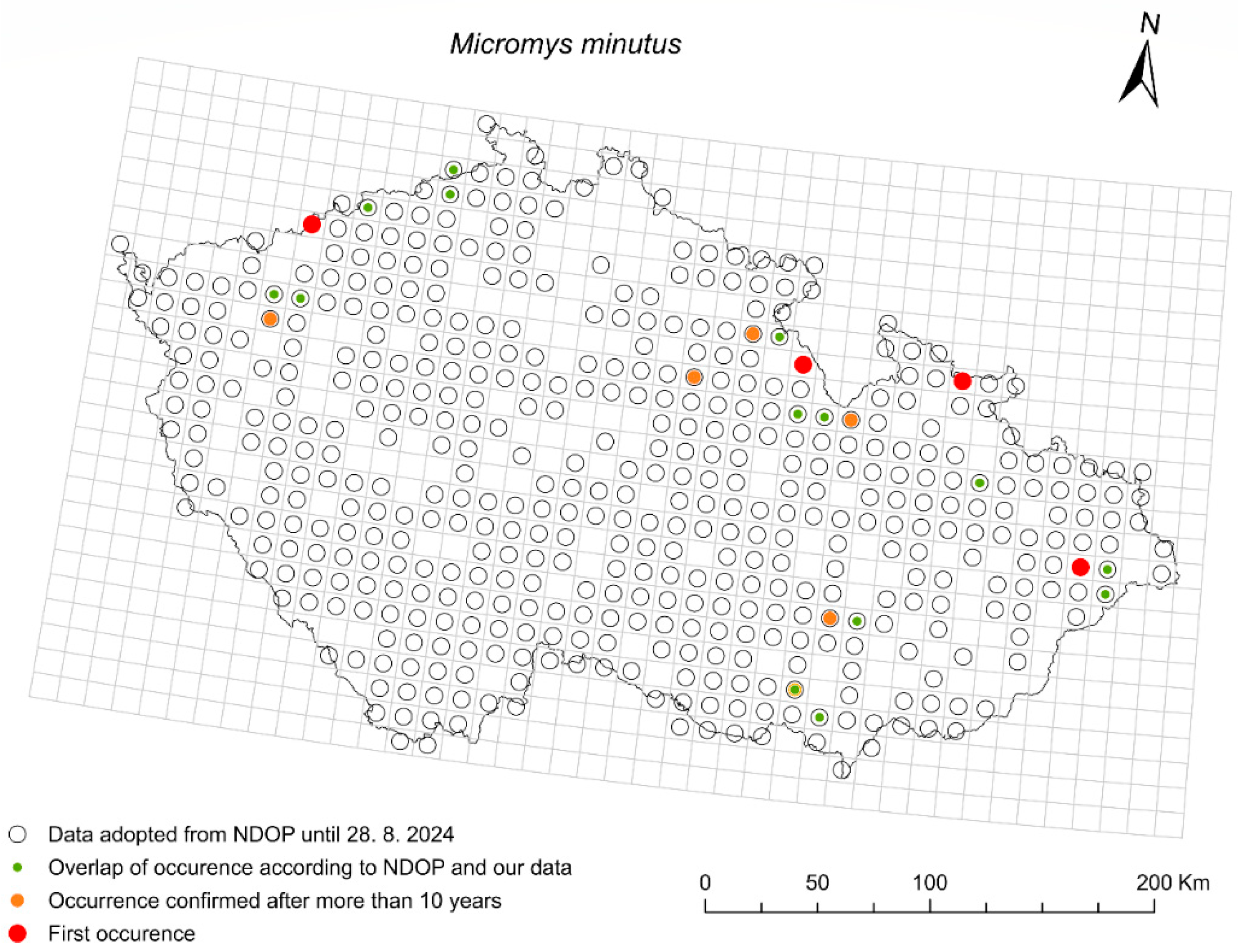 Some species of small terrestrial mammals are observed in the Czech Republic only in tens or units of cases per year, or even only once every few years. Some (often the same) species do not occur throughout the territory; therefore, knowledge of them is very limited. Rare or random observations are of limited use in conventional data evaluation. They are often difficult or impossible to statistically evaluate due to methodological heterogeneity and stochasticity. Nevertheless, we believe that these data provide valuable insights into the distributional dynamics of rare taxa and their ecological requirements (e.g., habitat preferences, climatic limits, seasonal activity patterns) [14].