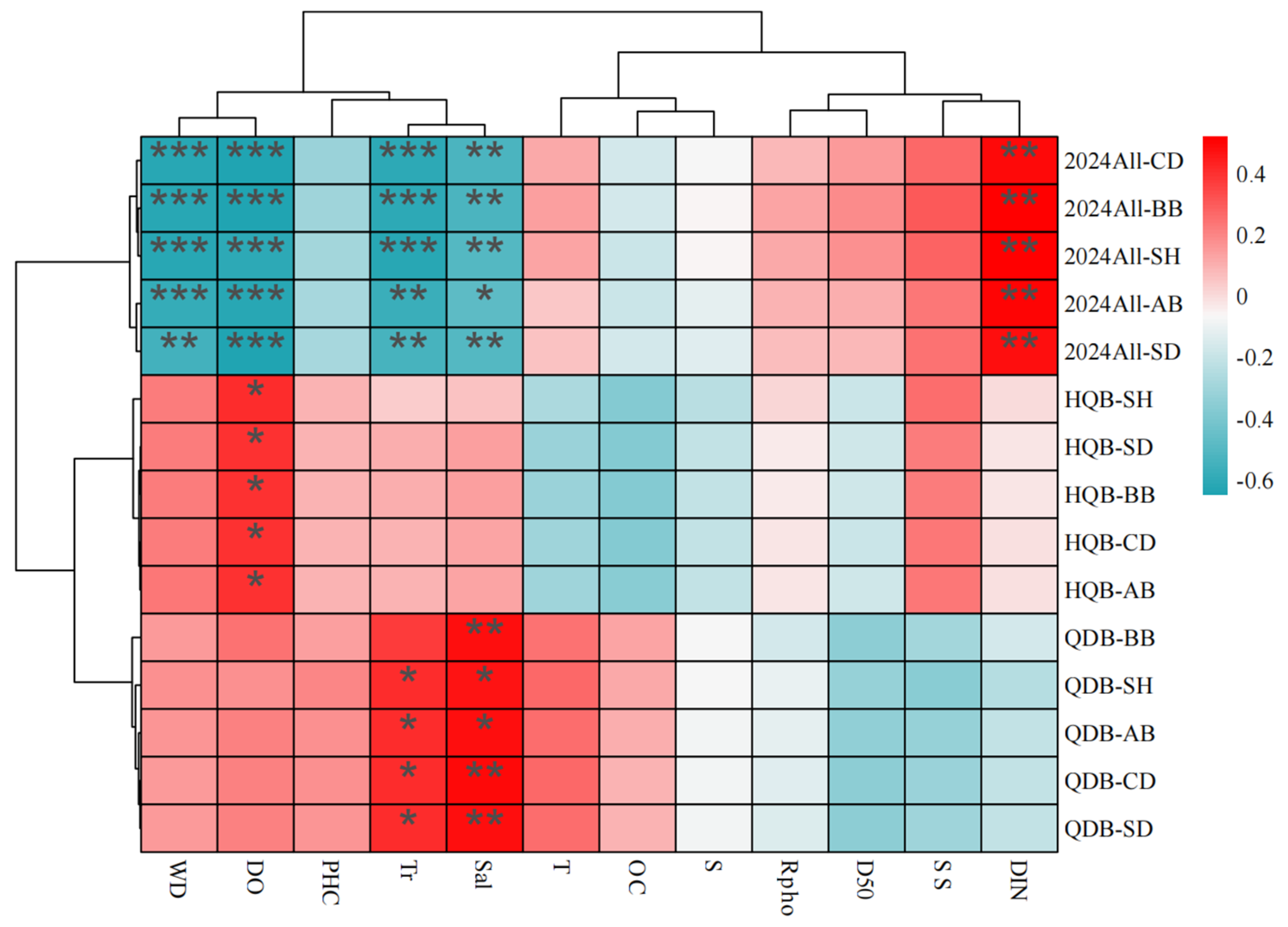 - Sha, J.J.; Liu, X.D.; Wang, H.; Song, X.L.; Bao, M.M.; Yu, Q.Y.; Wen, G.Y.; Wei, M. Status and habitat suitability evaluation: A case study of the typical temperate seagrass beds in the Bohai Sea, China. Mar. Environ. Res. 2025, 204, 106873. [Google Scholar] [CrossRef]