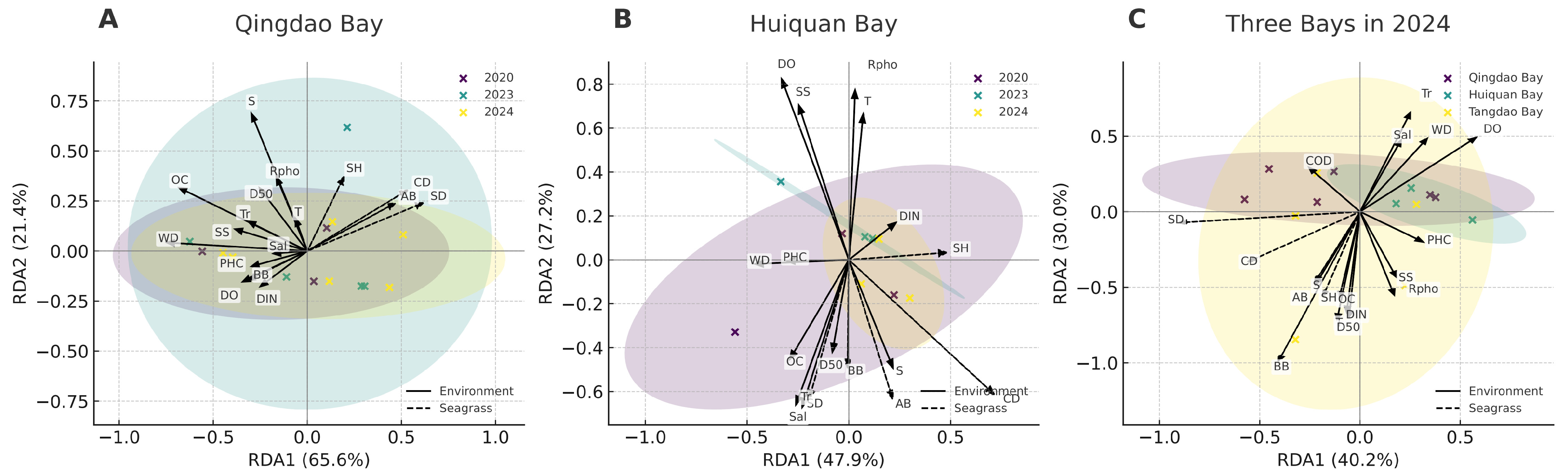3.3. Response Relationships Between Seagrass Communities and Environmental Factors