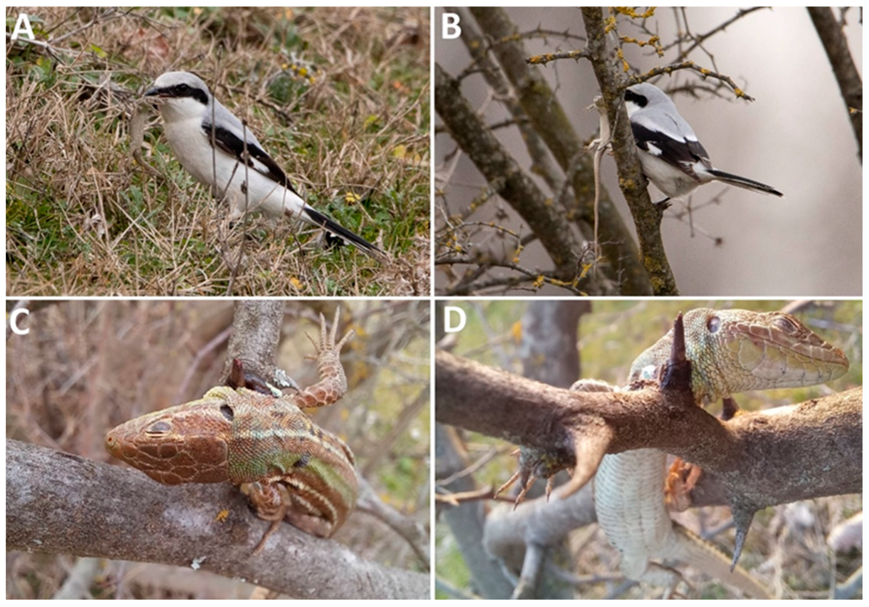 Christopoulos, A.; Kotselis, C.; Zevgolis, Y.G. Venturing out of Overwinter Refuge: A Case of Winter Predation on Podarcis tauricus (Georgi, 1801) (Squamata: Lacertidae) by Lanius excubitor Linnaeus, 1758 (Aves: Laniidae) in Greece. Diversity 2025, 17, 829. https://doi.org/10.3390/d17120829