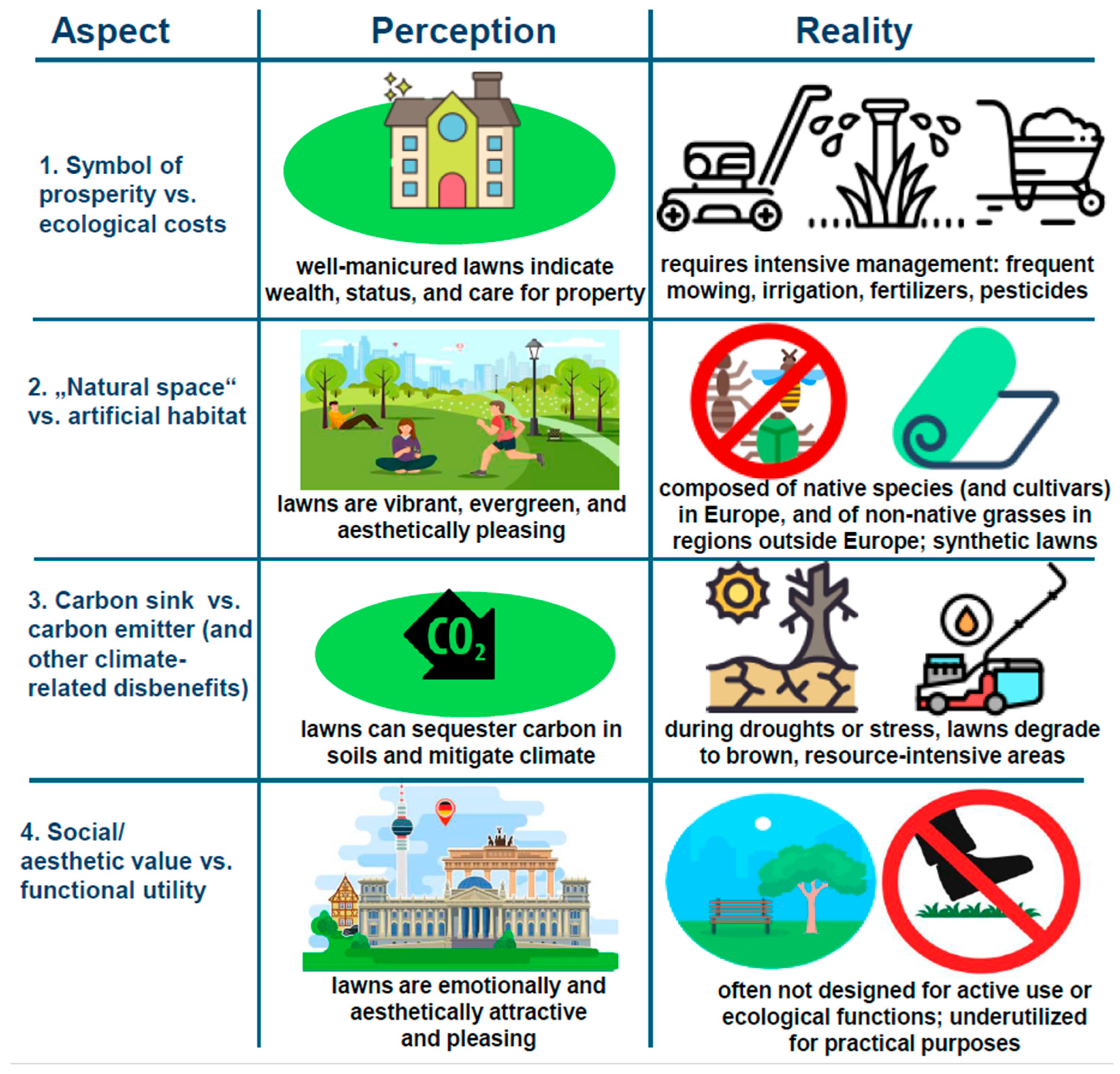 - To formulate practical recommendations and a future research direction for promoting NBS alternatives to conventional lawns, including rewilding, to enhance ecological performance, social acceptance, and management adaptability.