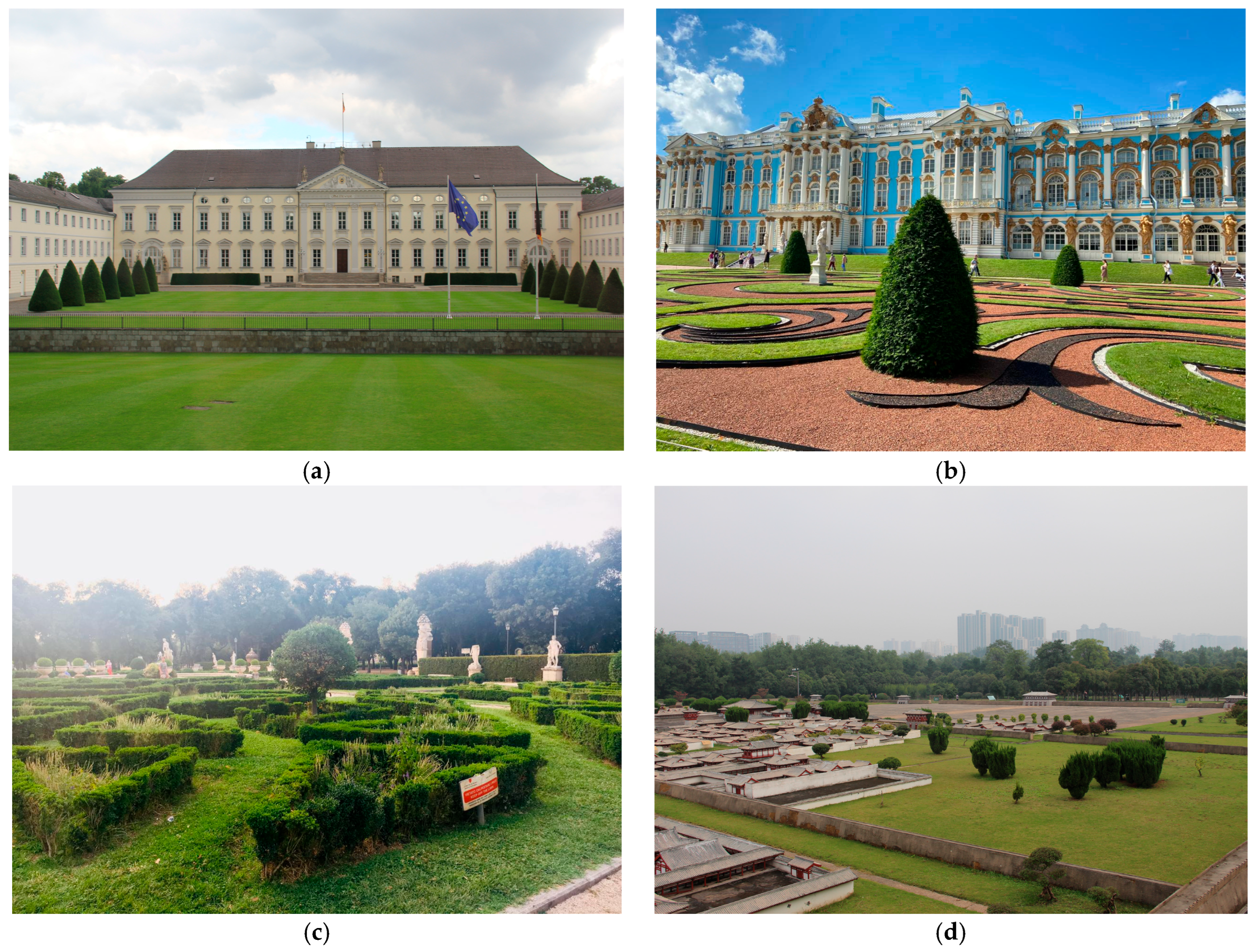 - Kümmerling, M.; Müller, N. The relationship between landscape design style and the conservation value of parks: A case study of a historical park in Weimar, Germany. Landsc. Urban Plan. 2012, 107, 111–117. [Google Scholar] [CrossRef]