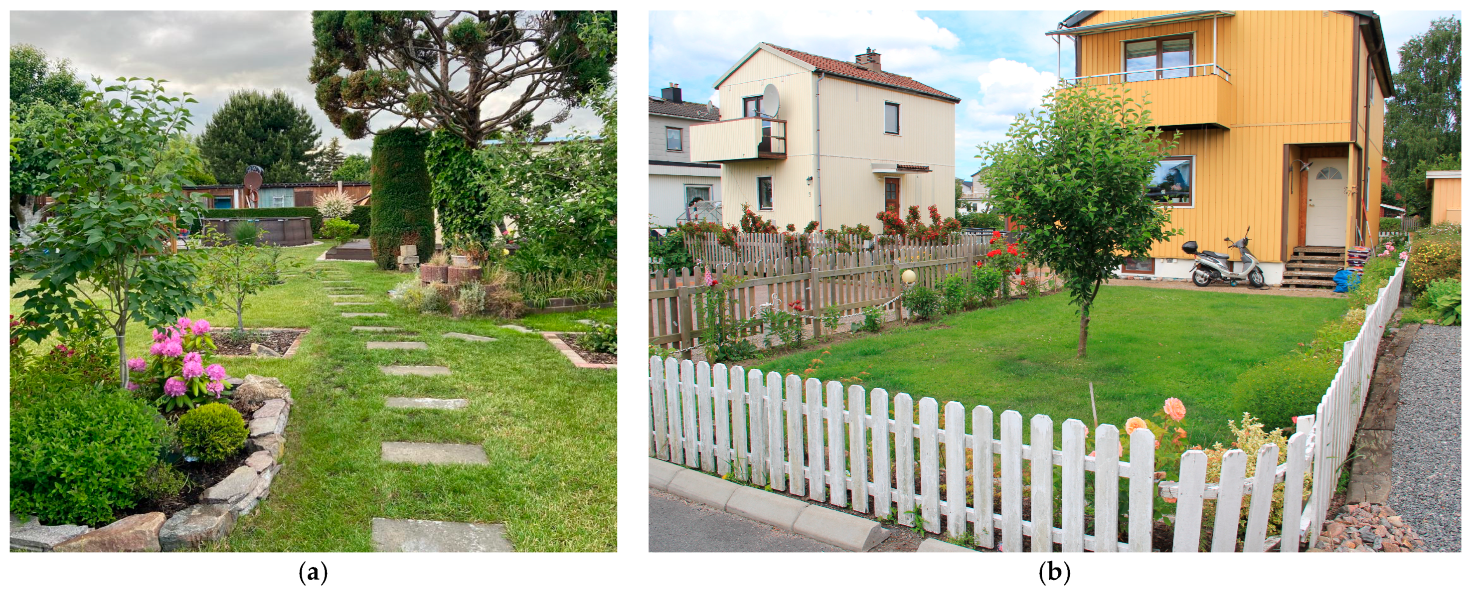 - Beumer, C. Show me your garden and I will tell you how sustainable you are: Dutch citizens’ perspectives on conserving biodiversity and promoting a sustainable urban living environment through domestic gardening. Urban For. Urban Green. 2018, 30, 260–279. [Google Scholar] [CrossRef]