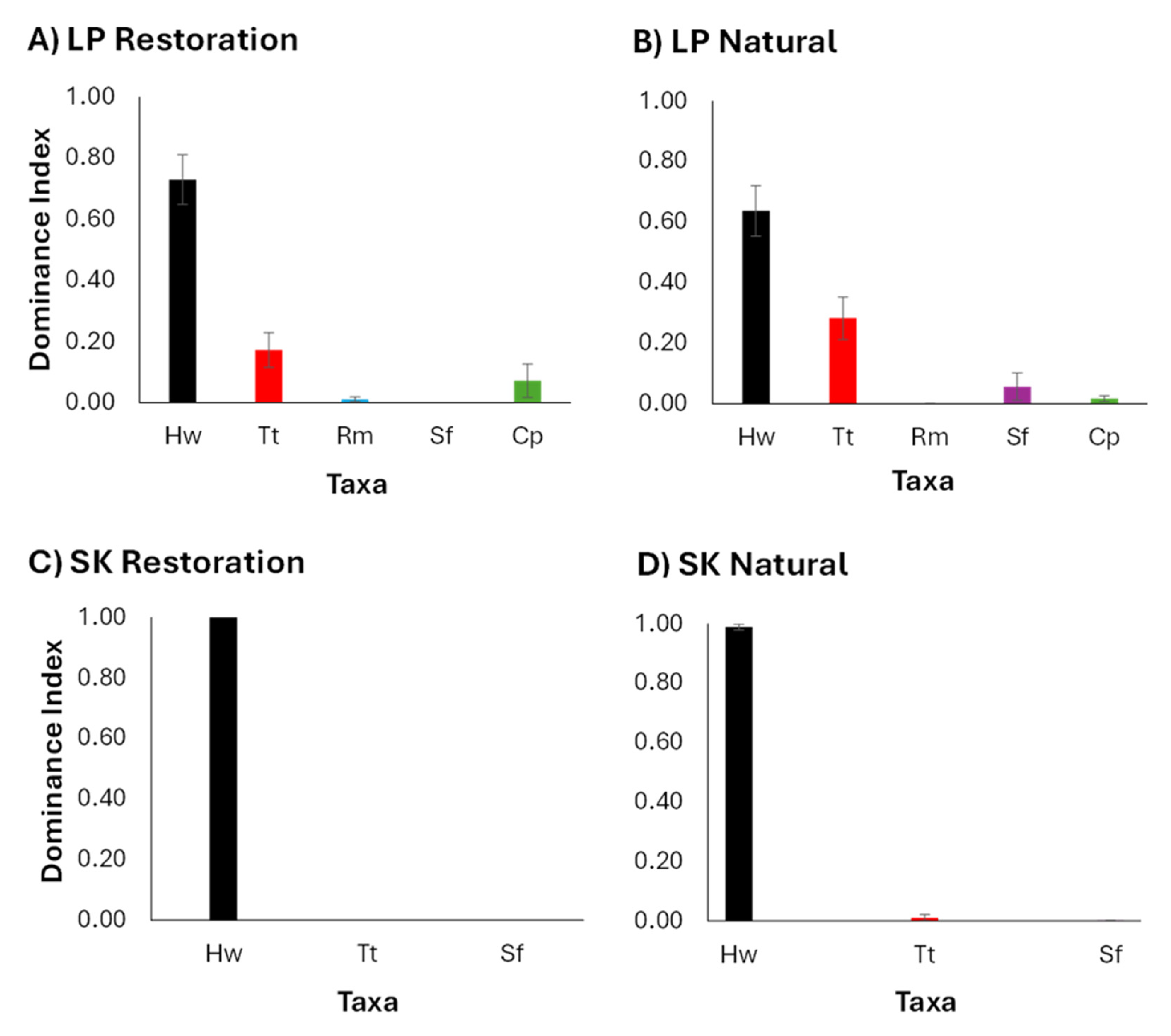 Chicago/Turabian StyleBell, Susan S., and Kasey L. MacLeod. 2025. "Patterns of Species Dominance in Two Coastal Restorations: Evidence of Sustained Seagrass Success over Long Time Scales" Diversity 17, no. 12: 832. https://doi.org/10.3390/d17120832