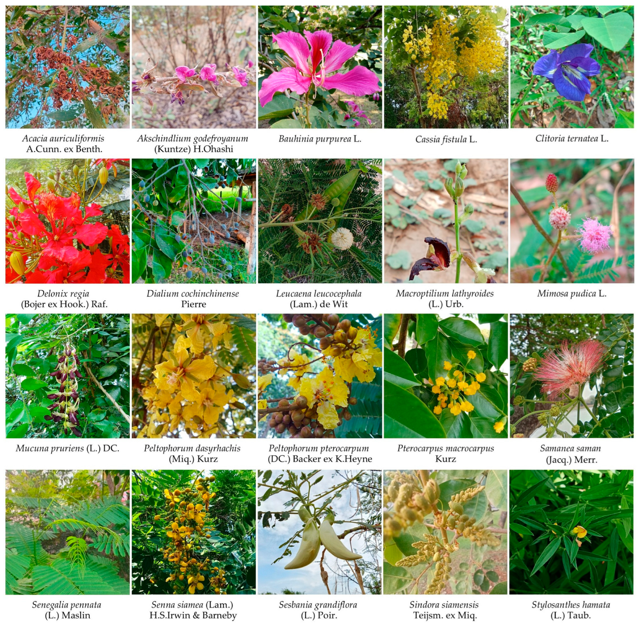 Saensouk, P.; Saensouk, S.; Mattapha, S.; Chanthavongsa, K.; Jitpromma, T. Diversity and Traditional Uses of Fabaceae Species in Maha Sarakham Province, Thailand. Diversity 2025, 17, 838. https://doi.org/10.3390/d17120838