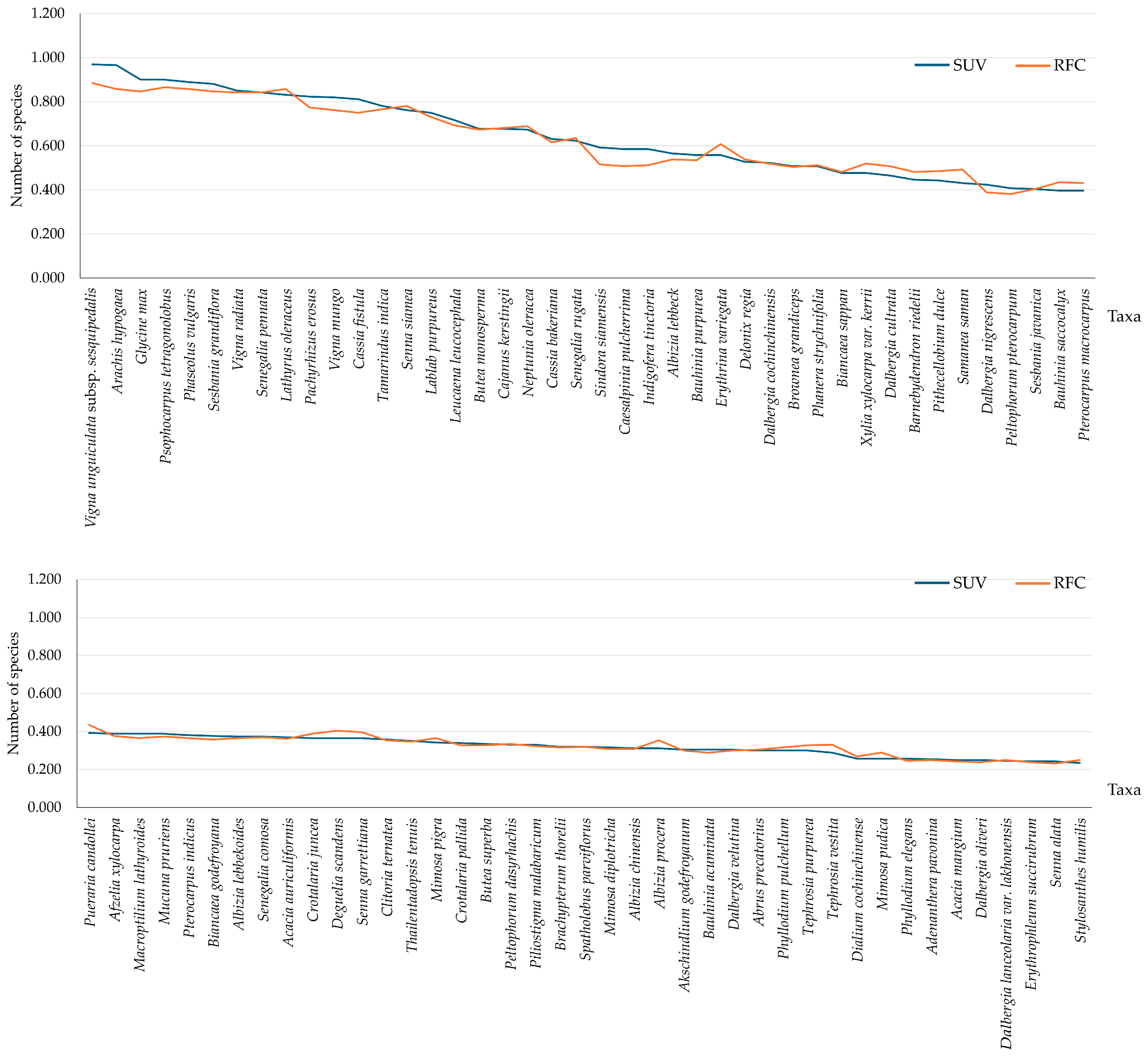 3.2. Species Use Value (SUV) of Fabaceae in Maha Sarakham Province