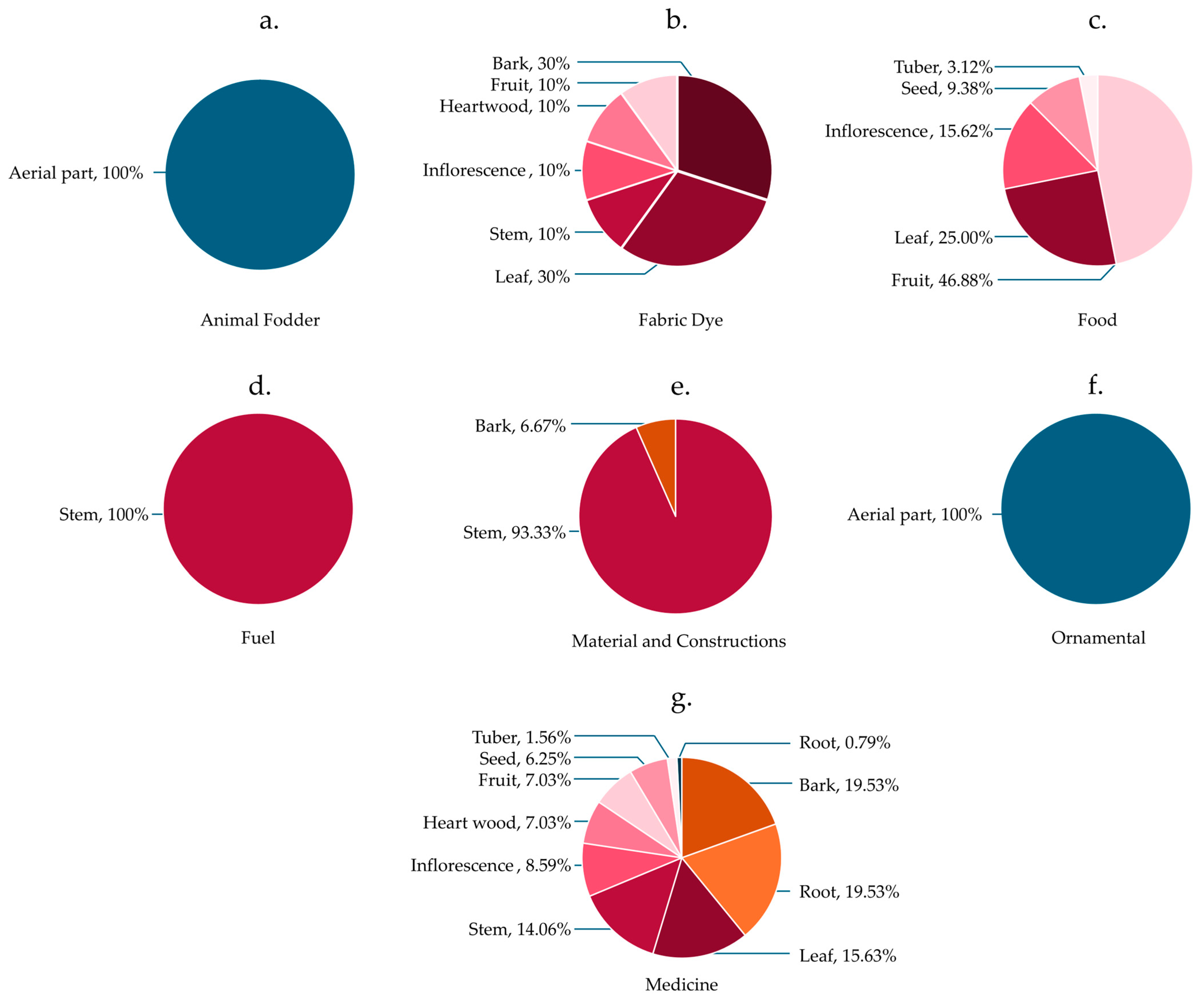 4.4. Ethnobotanical Applications of Fabaceae in Maha Sarakham Province