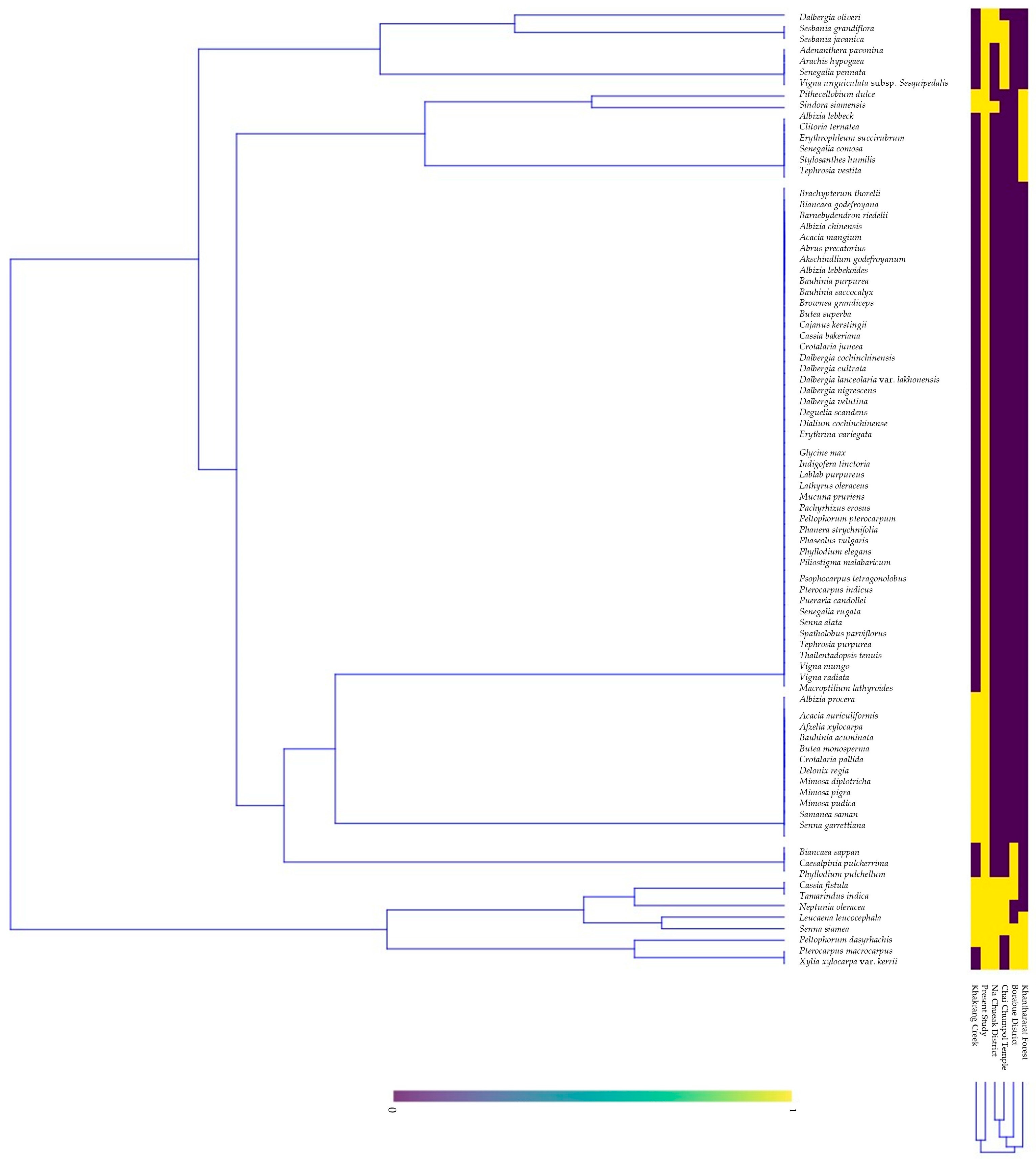| 69. | Senna garrettiana (Craib) H.S.Irwin & Barneby | แสมสาร (Samae San) | Native | T | cultivated | AP, HW | MD | 0.365 | 0.396 | TJ227 |