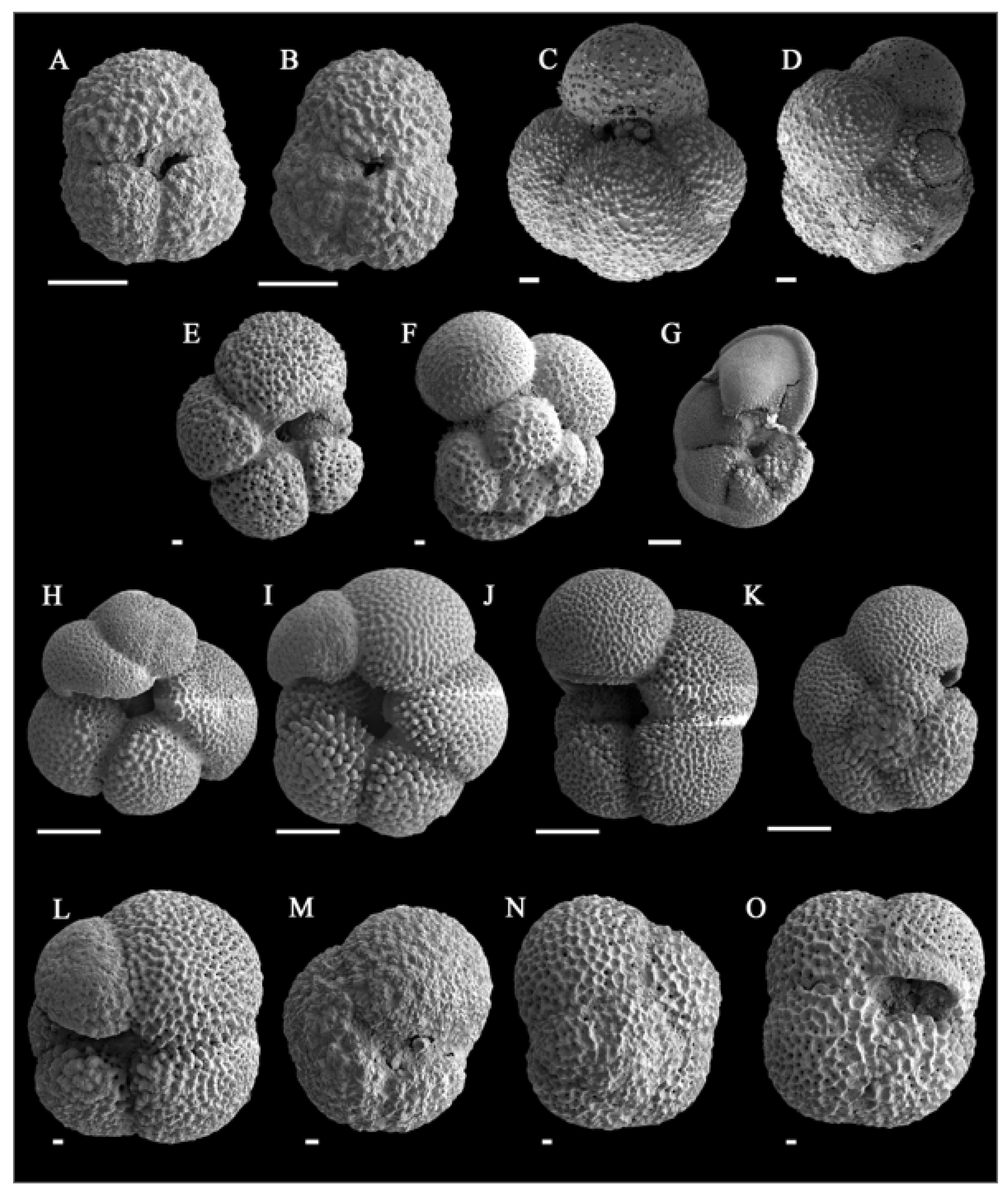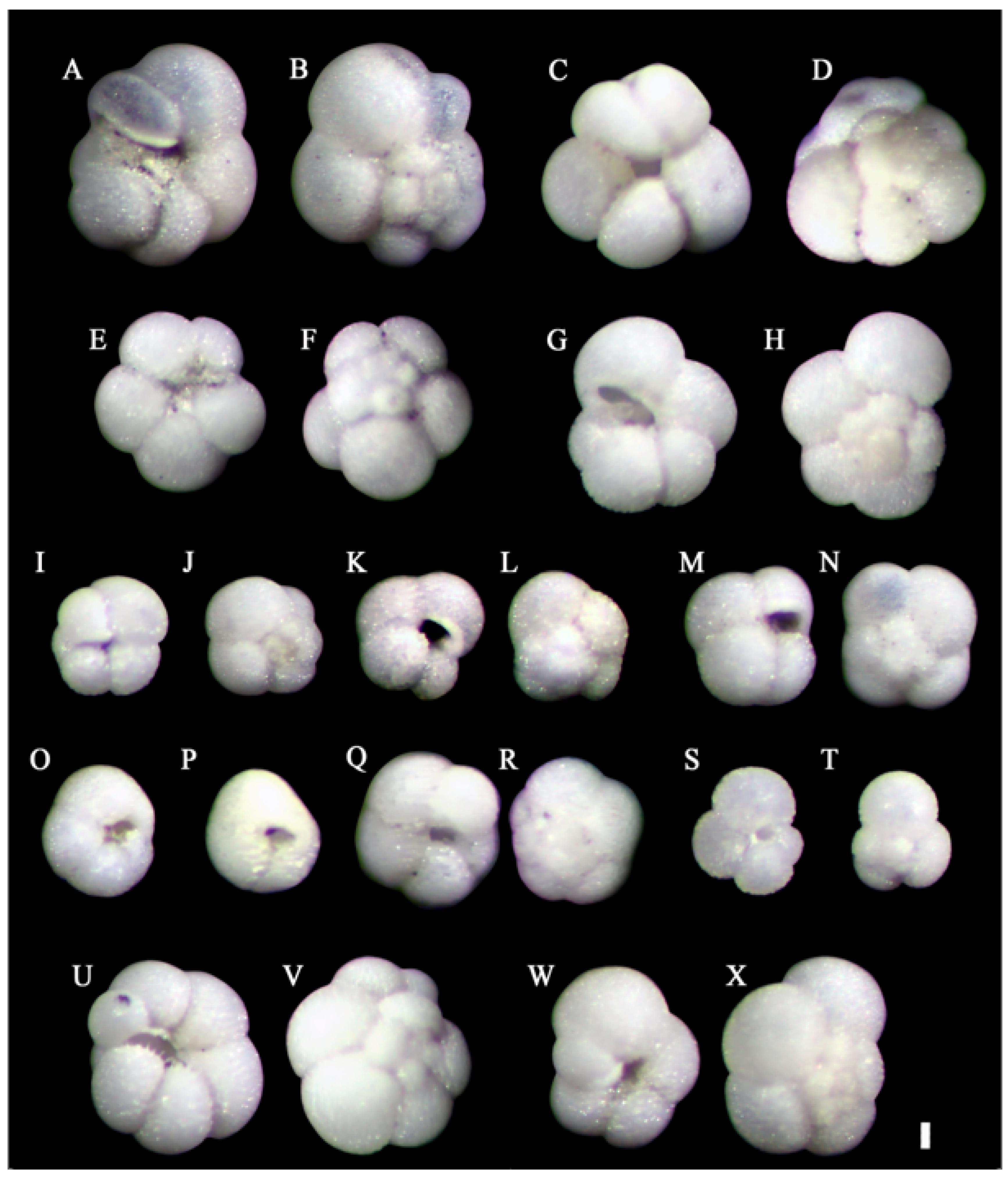 Description: The overall outline of the test is round and flat-triangular. The chambers are irregularly formed in a zigzag pattern from top to bottom, with the chamber size increasing towards the final chamber. It is easily distinguishable from other species.