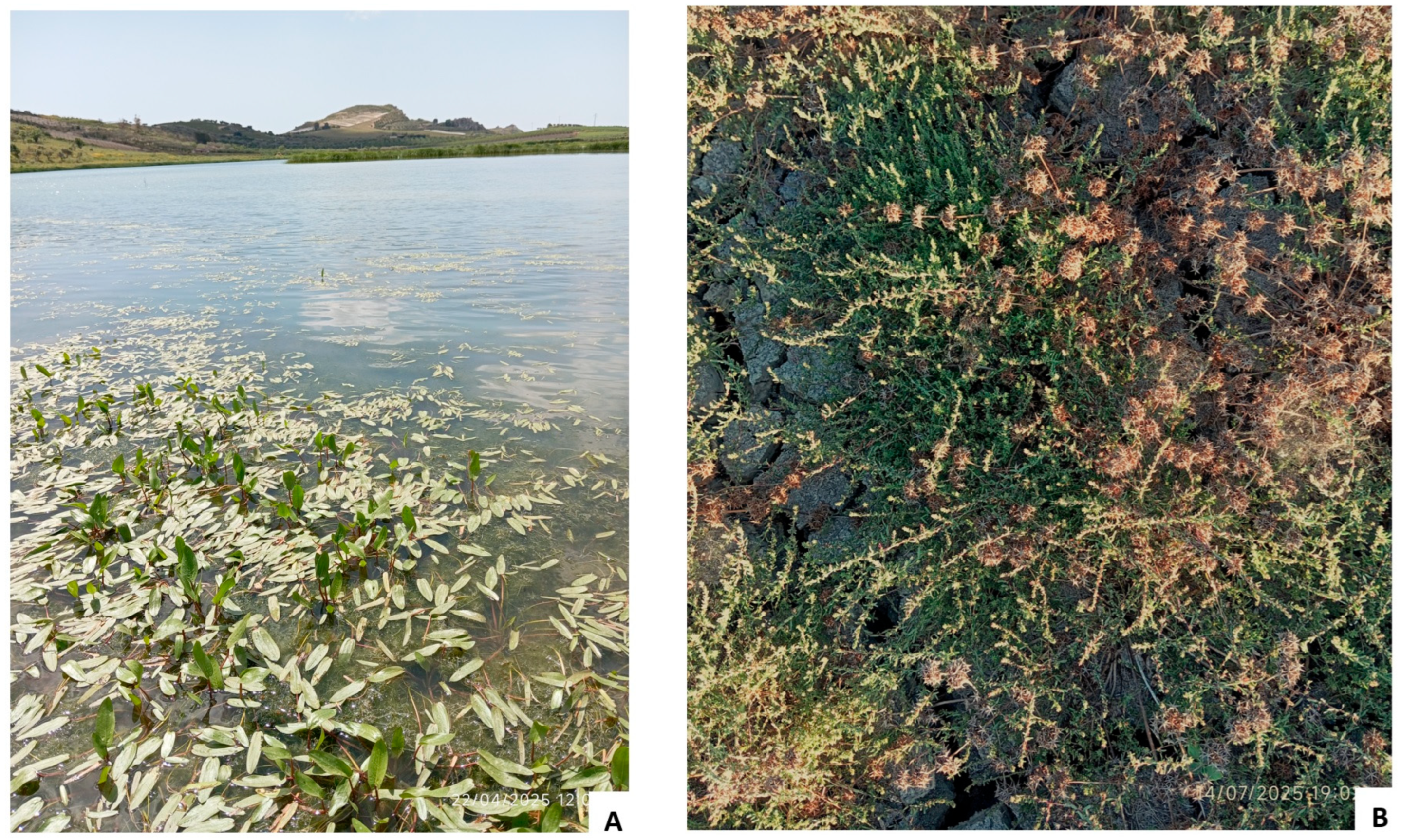 - Brullo, S.; Brullo, C.; Sciandrello, S.; Tavilla, G.; Cambria, S.; Tomaselli, V.; Ilardi, V.; Giusso del Galdo, G.; Minissale, P. The Plant Communities of the Class Isoëto-Nanojuncetea in Sicily. Plants 2022, 11, 1214. [Google Scholar] [CrossRef]