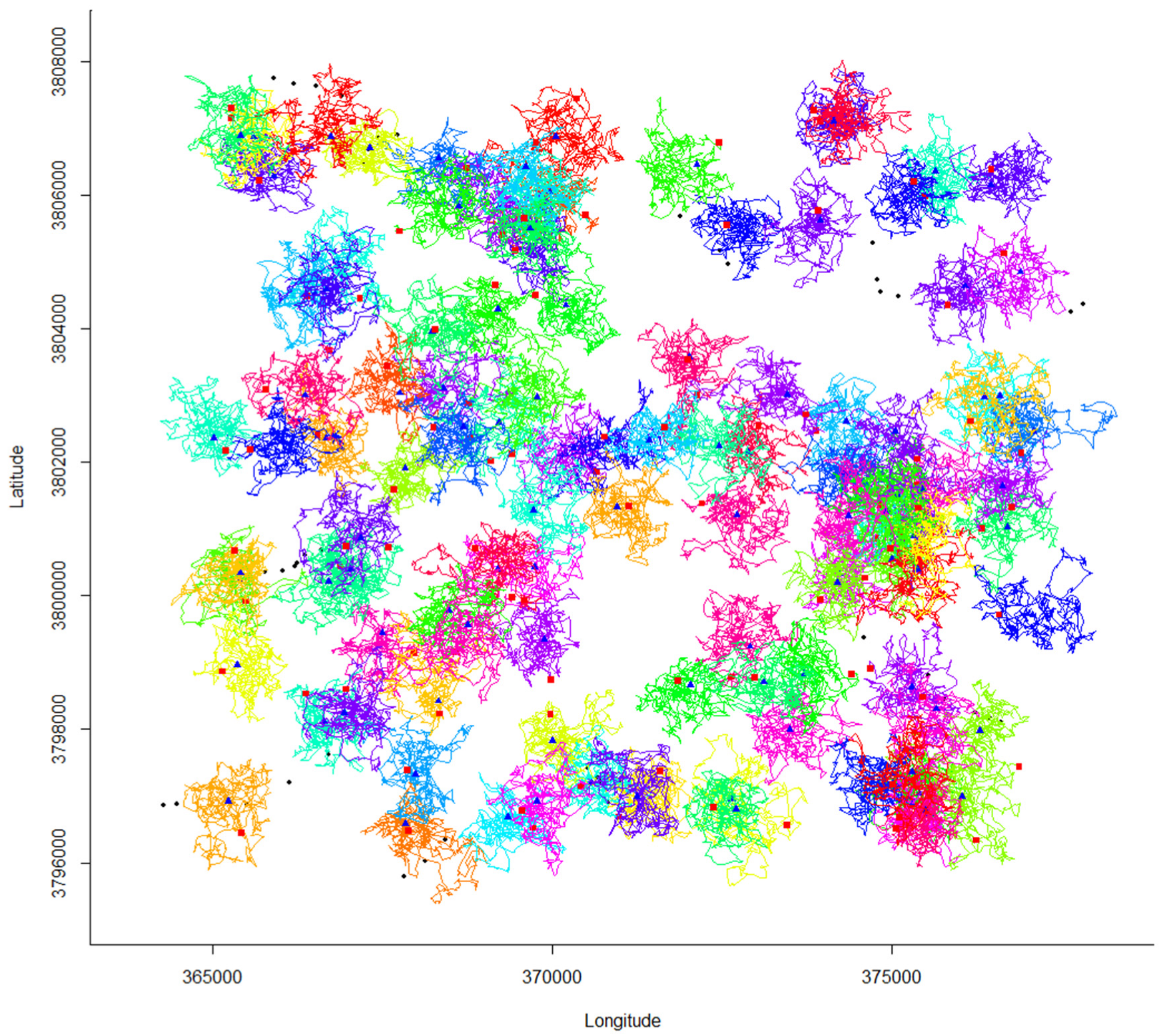 - Ramírez-Alvarez, D.; Li, X. Estimating density of native carnivores in central chile landscapes using a simulated movement model, cameratrapR: Insights on their potential exotic prey dietary subsidy. PeerJ 2025, 13, e19946. [Google Scholar] [CrossRef]