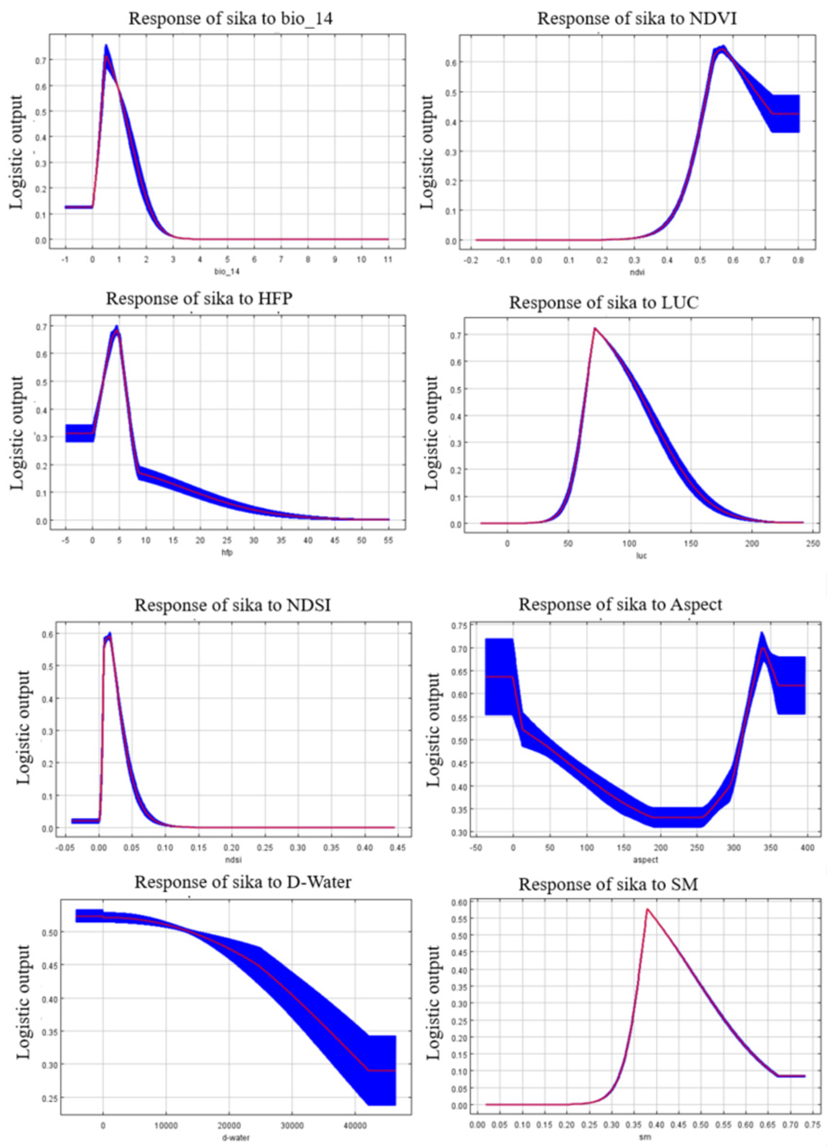 - Luo, Z.; Yu, H.; Yang, S.; Long, Y.; Liu, P.; Wang, T.; Zhao, C.; Liu, Q.; Xu, A. Climate change may improve the habitat suitability and connectivity of sika deer (Cervus nippon) in the Shennongjia area of China. Ecol. Inform. 2024, 81, 102558. [Google Scholar] [CrossRef]