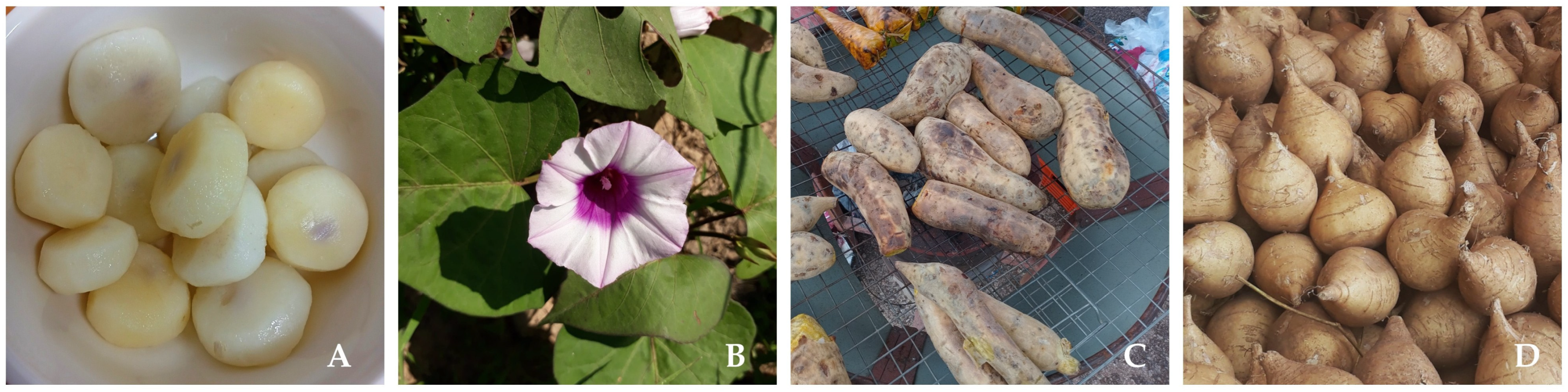 - Obidiegwu, J.E.; Lyons, J.B.; Chilaka, C.A. The Dioscorea Genus (Yam)—An Appraisal of Nutritional and Therapeutic Potentials. Foods 2020, 9, 1304. [Google Scholar] [CrossRef]