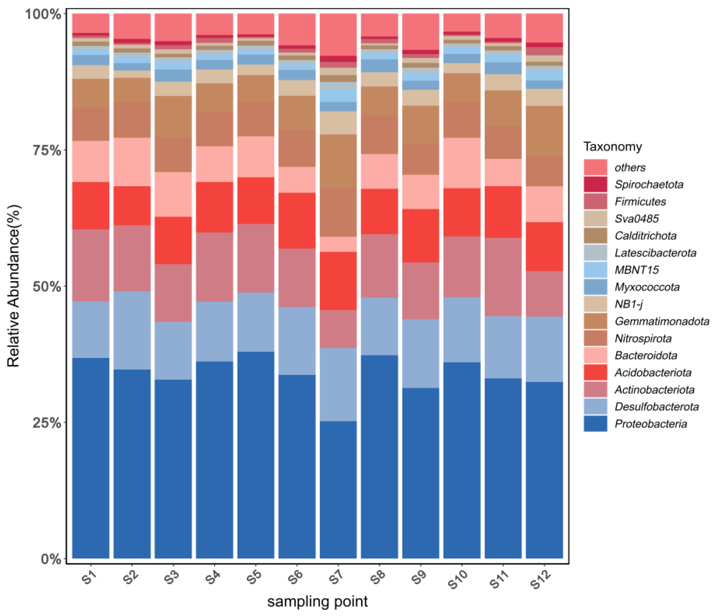 4.2. Characteristics of Microbial Community Structure in Sediments