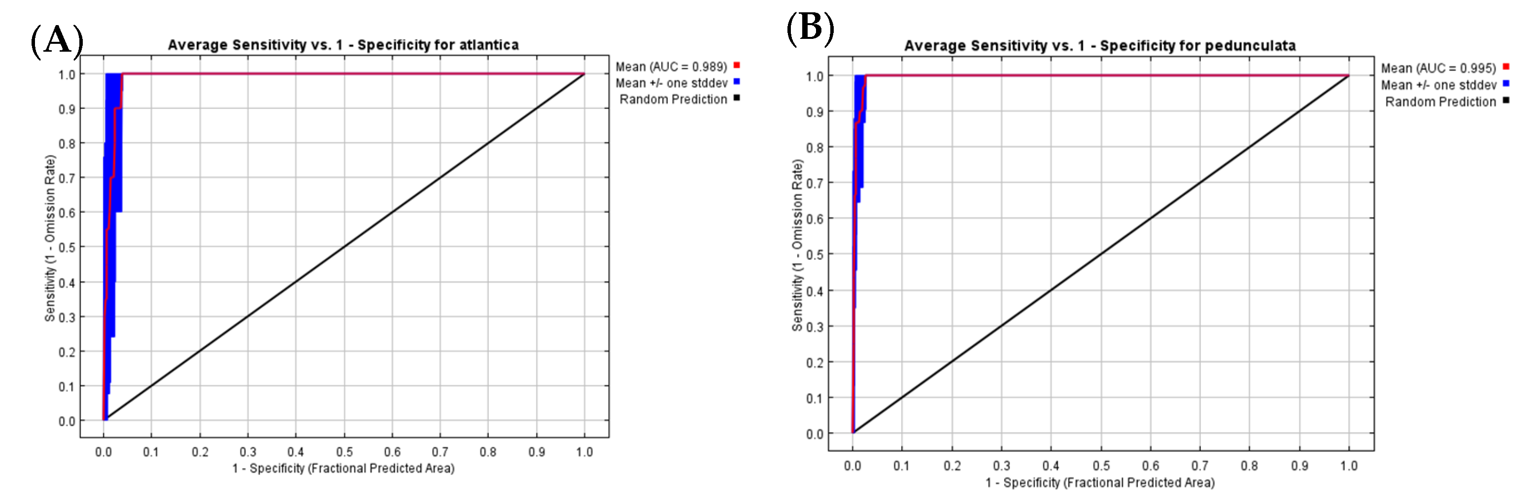 - Peterson, A.T.; Papeş, M.; Soberón, J. Rethinking receiver operating characteristic analysis applications in ecological niche modeling. Ecol. Model. 2011, 222, 1333–1342. [Google Scholar] [CrossRef]