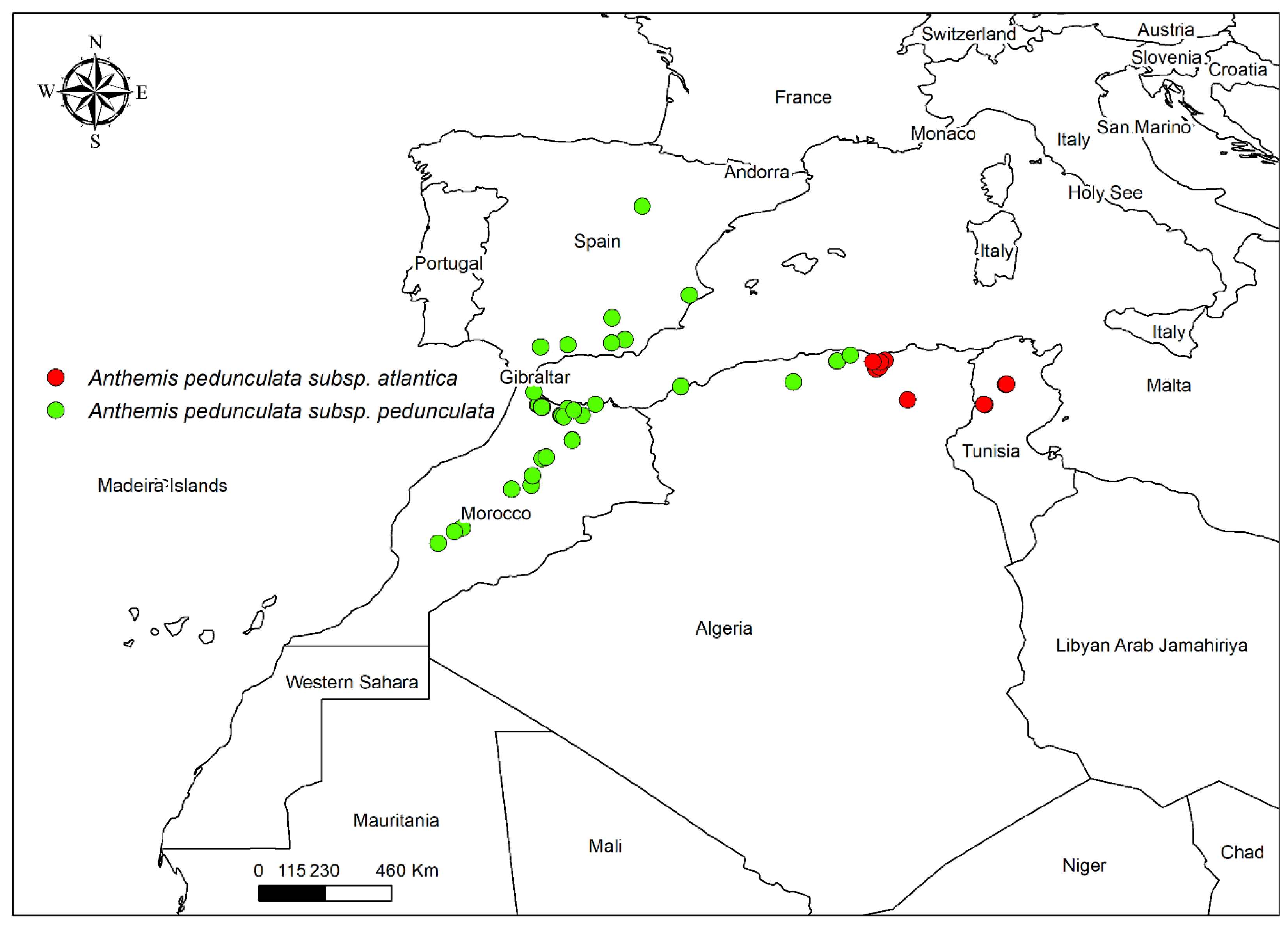 | Distribution of Anthemis pedunculata subsp. atlantica (%) | |||