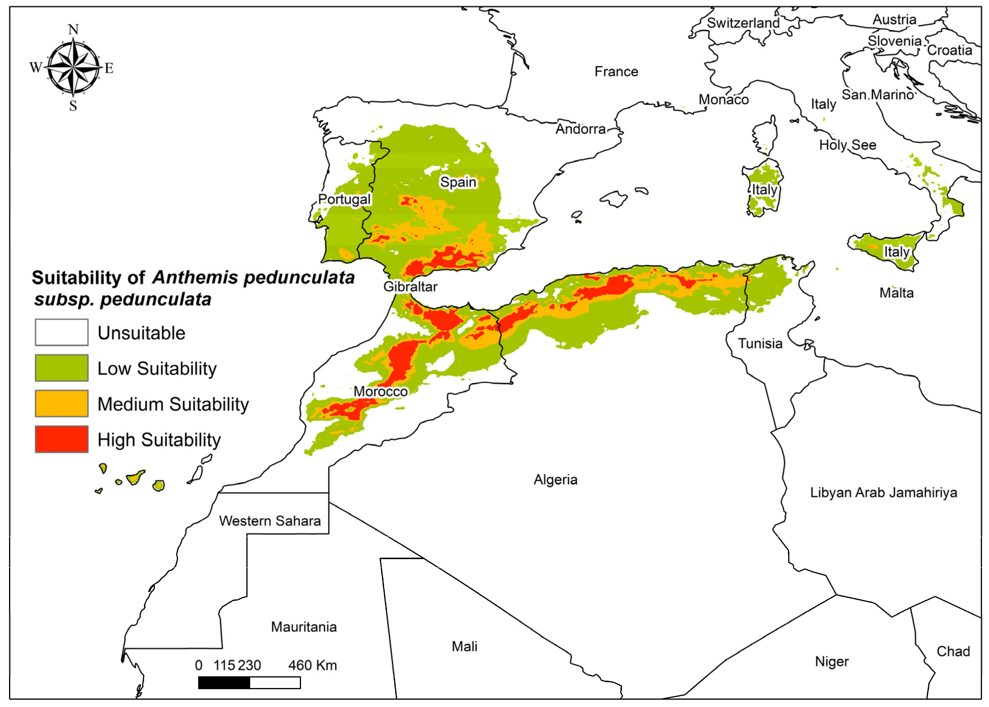 Modeling Habitat Suitability for Endemic Anthemis pedunculata subsp. pedunculata and Anthemis pedunculata subsp. atlantica in Mediterranean Region Using MaxEnt and GIS-Based Analysis