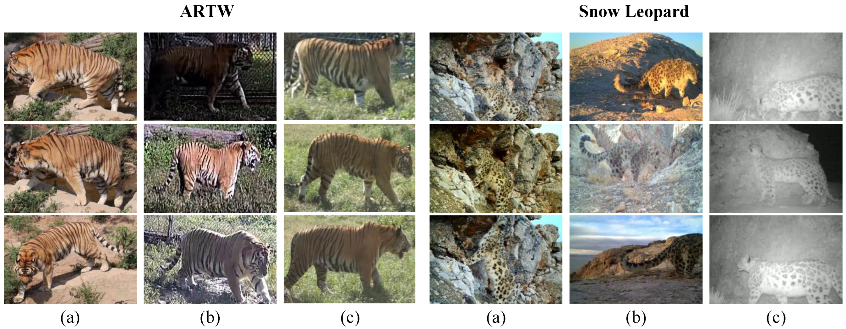 - Li, S.; Li, J.; Tang, H.; Qian, R.; Lin, W. ATRW: A Benchmark for Amur Tiger Re-identification in the Wild. In Proceedings of the 28th ACM International Conference on Multimedia, Seattle, WA, USA, 12–16 October 2020; pp. 2590–2598. [Google Scholar]