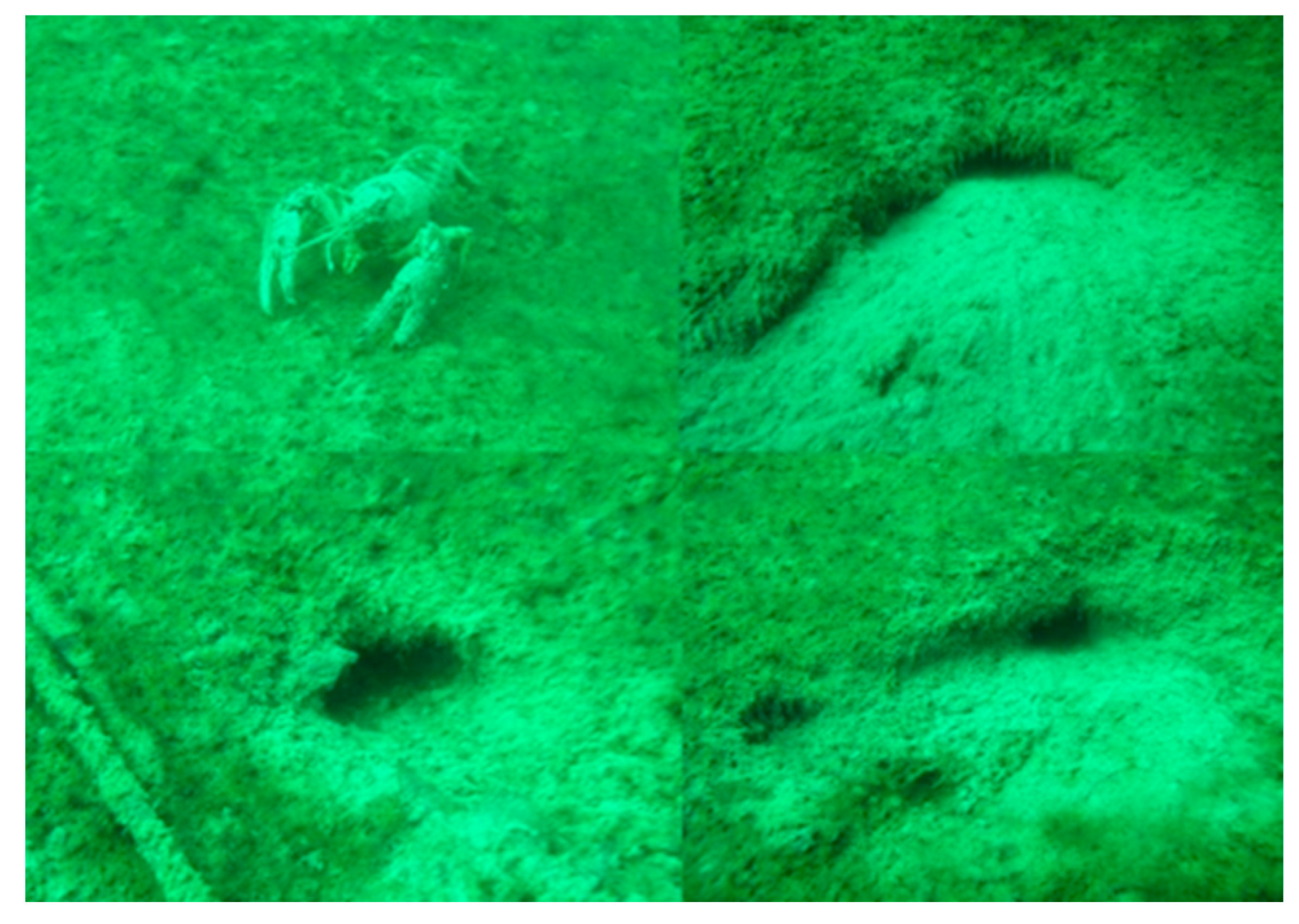 - Donato, R.; Rollandin, M.; Favaro, L.; Ferrarese, A.; Pessani, D.; Ghia, D. Habitat use and population structure of the invasive red swamp crayfish Procambarus clarkii (Girard, 1852) in a protected area in northern Italy. Knowl. Manag. Aquat. Ecosyst. 2018, 419, 12. [Google Scholar] [CrossRef]