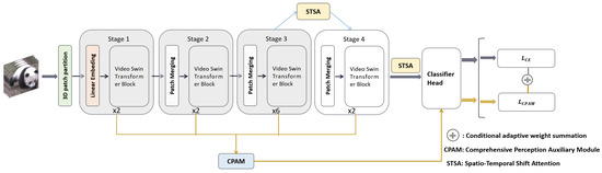 We leveraged the Kinetics-400 pretrained weights and froze the parameters of the first three stages, training only the parameters of the fourth stage and the classifier to adapt to the PACV-8 dataset. The challenge then became how to improve the model’s performance without affecting the pretrained weights. Our designed CPAM and STSA modules can enhance the model’s adaptation to the extraction and classification of giant panda behavioral features without altering the pretrained weights. Section 2.2 will introduce the CPAM module, and Section 2.3 will discuss the STSA module.