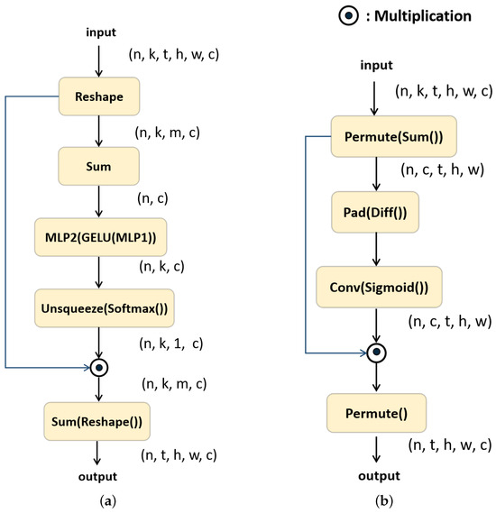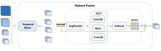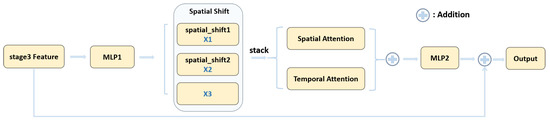 Meanwhile, remains unchanged. Following the spatial shift operation, modified features are obtained. Subsequently, they are passed through a split attention (SA) module and a temporal attention (TA) module, as shown in Figure 5.