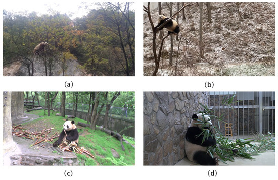 This study collected giant panda video data from three main sources: videos provided by the Chengdu Research Base of Giant Panda Breeding, videos obtained from online platforms (e.g., iPanda Panda Channel, “Kai Fan Le” Panda Channel), and the wild giant panda video dataset described in [25]. Some scenes of the videos provided by the Giant Panda Base are shown in Figure 6. While videos from the Chengdu Research Base of Giant Panda Breeding typically have high resolution and smoothness, they also contain a significant amount of irrelevant footage. Videos obtained from online sources are often chaotic and have undergone various digital post-processing steps. The quality of the wild giant panda video dataset is extremely poor, with occlusions and complex lighting conditions rendering it unusable. Therefore, some preprocessing is required.