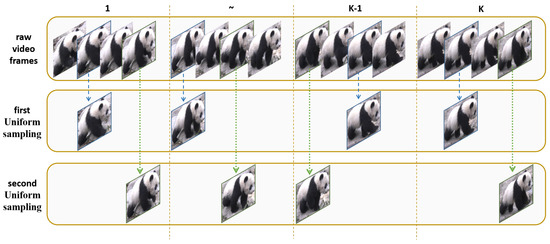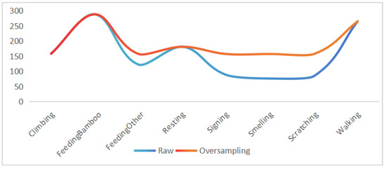To address the issue of uneven dataset distribution, this study proposes a simple yet effective uniform oversampling method, as illustrated in Figure 9. Giant pandas exhibit slow movements and minimal variations between consecutive frames, often showing high correlation. Sampling every frame in the dataset not only wastes computational resources but also carries the risk of overfitting. However, for videos of varying lengths, interval sampling can lead to incomplete behavior sampling.