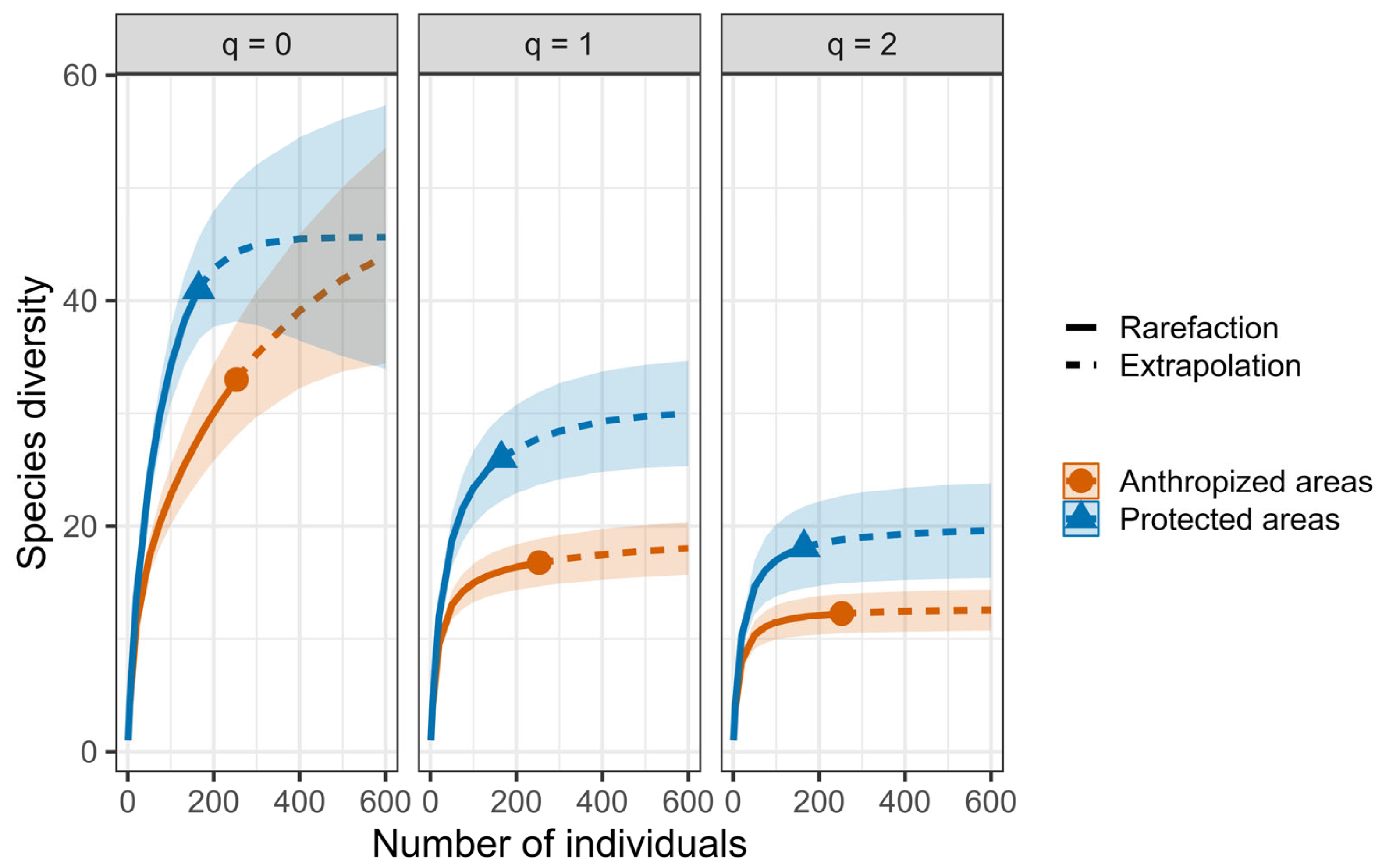 - Chao, A.; Gotelli, N.J.; Hsieh, T.C.; Sander, E.L.; Ma, K.H.; Colwell, R.K.; Ellison, A.M. Rarefaction and Extrapolation with Hill Numbers: A Framework for Sampling and Estimation in Species Diversity Studies. Ecol. Monogr. 2014, 84, 45–67. [Google Scholar] [CrossRef]