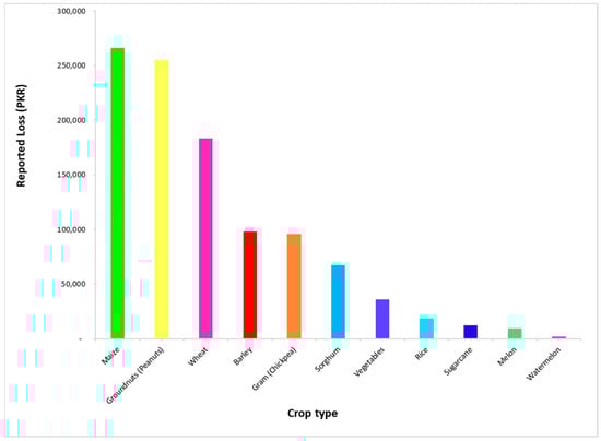 Reported financial losses across various crop types caused by wild boars (in PKR).