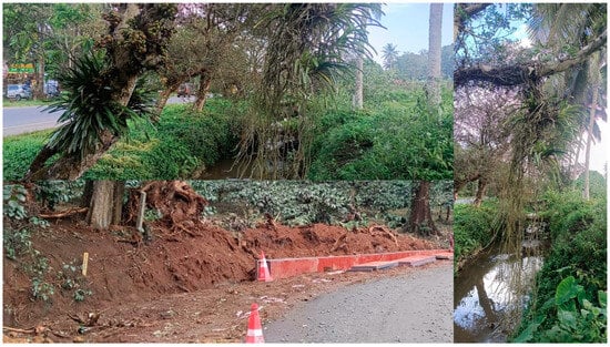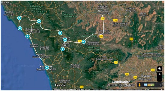These roads are highways, with private landowners on each side of the road. These small- to medium-sized plots of land predominantly feature domesticated plants, primarily consisting of fruit-bearing and timber-producing species. Surveying occurred only once along the Perumba–Payyannur Road and Kalpetta–Mananthavadi Road in the districts of Kannur and Wayanad, respectively (Figure 1B).