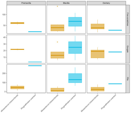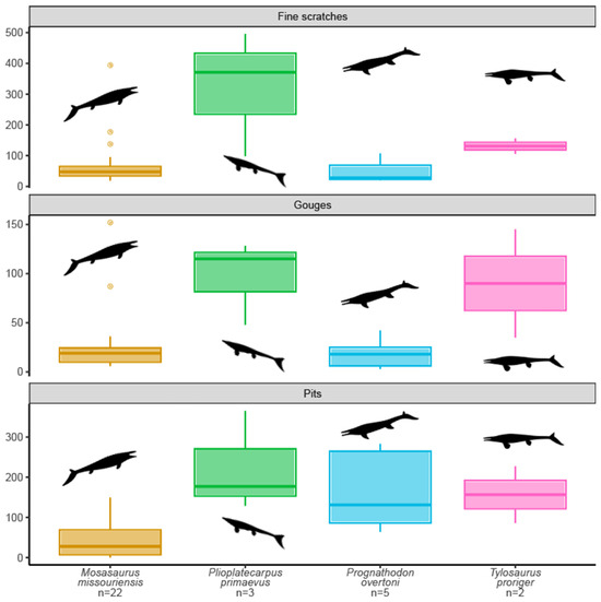 - Holwerda, F.M.; Bestwick, J.; Purnell, M.A.; Jagt, J.W.M.; Schulp, A.S. Three-dimensional dental microwear in type-Maastrichtian mosasaur teeth (Reptilia, Squamata). Sci. Rep. 2023, 13, 18720. [Google Scholar] [CrossRef]