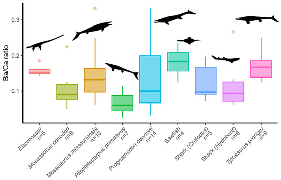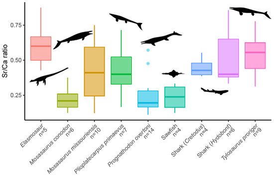 - Peek, S.; Clementz, M.T. Sr/Ca and Ba/Ca variations in environmental and biological sources: A survey of marine and terrestrial systems. Geochim. Cosmochim. Acta 2012, 95, 36–52. [Google Scholar] [CrossRef]