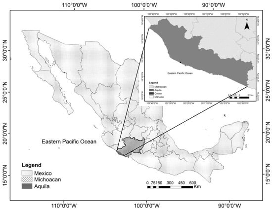 This study was conducted at Colola Beach, Mexico; the main nesting and reproduction area for black sea turtles (C. m. agassizii) in the eastern Pacific Ocean (18°18′38″ N, 103°25′50″ W); it is an unprotected open beach 4.8 km long and with an average width of 150 m that runs in an east–west direction (Figure 1).