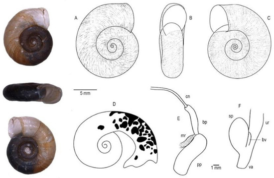 - Ohlweiler, F.P. Manual de Gastrópodes Límnicos e Terrestres do Estado de São Paulo Associados às Helmintoses; Redes Editora: São Paulo, Brazil, 2010. [Google Scholar]